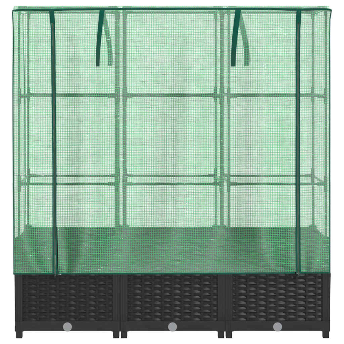 This raised bed with a greenhouse cover provides lots of growing space with its sturdy supporting frame.Sturdy construction: The raised bed, constructed from polypropylene, features a sturdy iron tube frame on top, enabling plants to grow and climb through it.Functional cover: The raised bed features a water-resistant polyethylene cover that protects your plants from extreme temperatures and keeps out insects, birds, and small animals.Practical design: The raised bed includes zippers for ventilation, allowing you to adjust the cover as needed. Additionally, it features ropes at the top, making it easy to secure the net to the tube.Rattan look design: The raised bed, featuring the rattan look design, adds a touch of natural charm to your outdoor living space.Wide applications: The raised bed provides ample space for your plants, vegetables, herbs, and flowers. You can use it in gardens, courtyards, balconies, and so on.