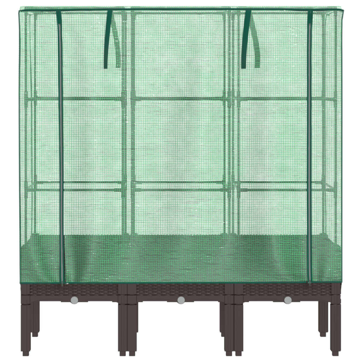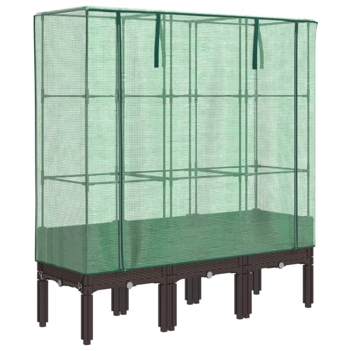 This raised bed with a greenhouse cover provides lots of growing space with its sturdy supporting frame.Sturdy construction: The raised bed, constructed from polypropylene, features a sturdy iron tube frame on top, enabling plants to grow and climb through it.Functional cover: The raised bed features a water-resistant polyethylene cover that protects your plants from extreme temperatures and keeps out insects, birds, and small animals.Practical design: The raised bed includes zippers for ventilation, allowing you to adjust the cover as needed. Additionally, it features ropes at the top, making it easy to secure the net to the tube.Rattan look design: The raised bed, featuring the rattan look design, adds a touch of natural charm to your outdoor living space.Wide applications: The raised bed provides ample space for your plants, vegetables, herbs, and flowers. You can use it in gardens, courtyards, balconies, and so on.