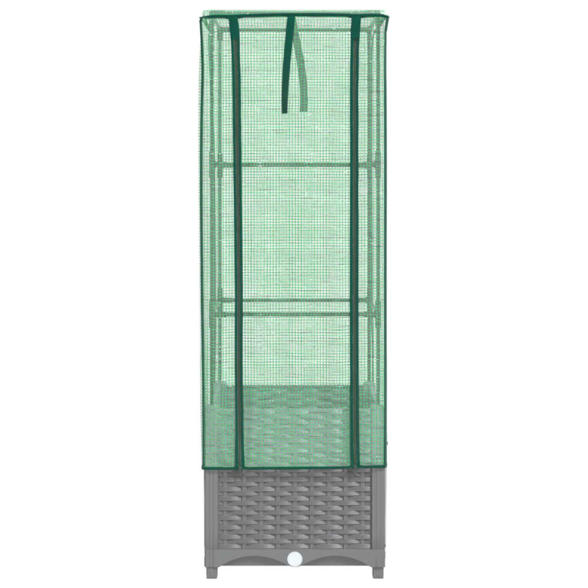 This raised bed with a greenhouse cover provides lots of growing space with its sturdy supporting frame.Sturdy construction: The raised bed, constructed from polypropylene, features a sturdy iron tube frame on top, enabling plants to grow and climb through it.Functional cover: The raised bed features a water-resistant polyethylene cover that protects your plants from extreme temperatures and keeps out insects, birds, and small animals.Practical design: The raised bed includes zippers for ventilation, allowing you to adjust the cover as needed. Additionally, it features ropes at the top, making it easy to secure the net to the tube.Rattan look design: The raised bed, featuring the rattan look design, adds a touch of natural charm to your outdoor living space.Wide applications: The raised bed provides ample space for your plants, vegetables, herbs, and flowers. You can use it in gardens, courtyards, balconies, and so on.
