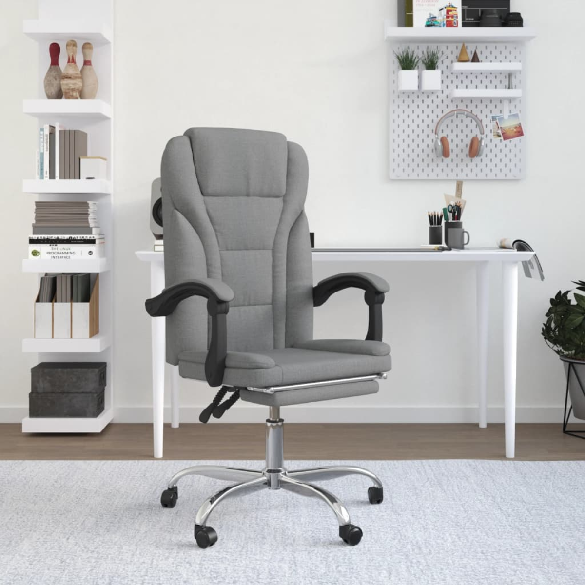Featuring a minimalistic design, this trendy reclining office chair combines elegance and comfort, making it an eye-catcher in your working space. Durable fabric: The fabric features a simple and clean look, and is breathable and durable.Adjustable backrest and height: It is specially designed with a reclining function so that you can adjust the backrest and footrest as per your comfort. Use the lever to adjust the height of your seat to your liking.Convenient design: The 360 degree swivel design allows a wider range of motion. Additionally, it is convenient to move around with rolling castors.Sturdy and stable frame: The metal and plywood frames ensure sturdiness and stability. Note:Each product comes with an assembly manual in the box for easy assembly.