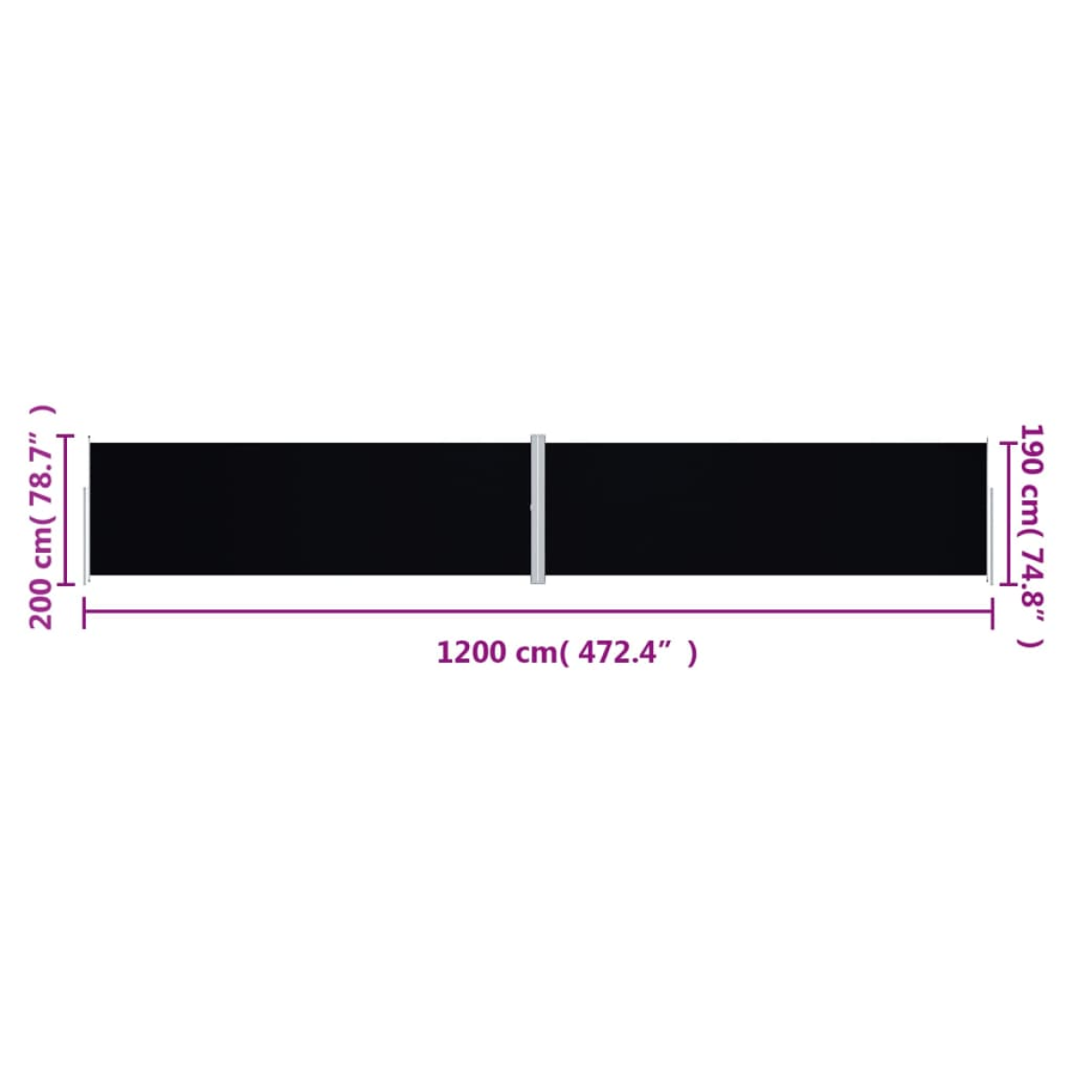 vidaXL Retractable Side Awning Black 200x1200 cm