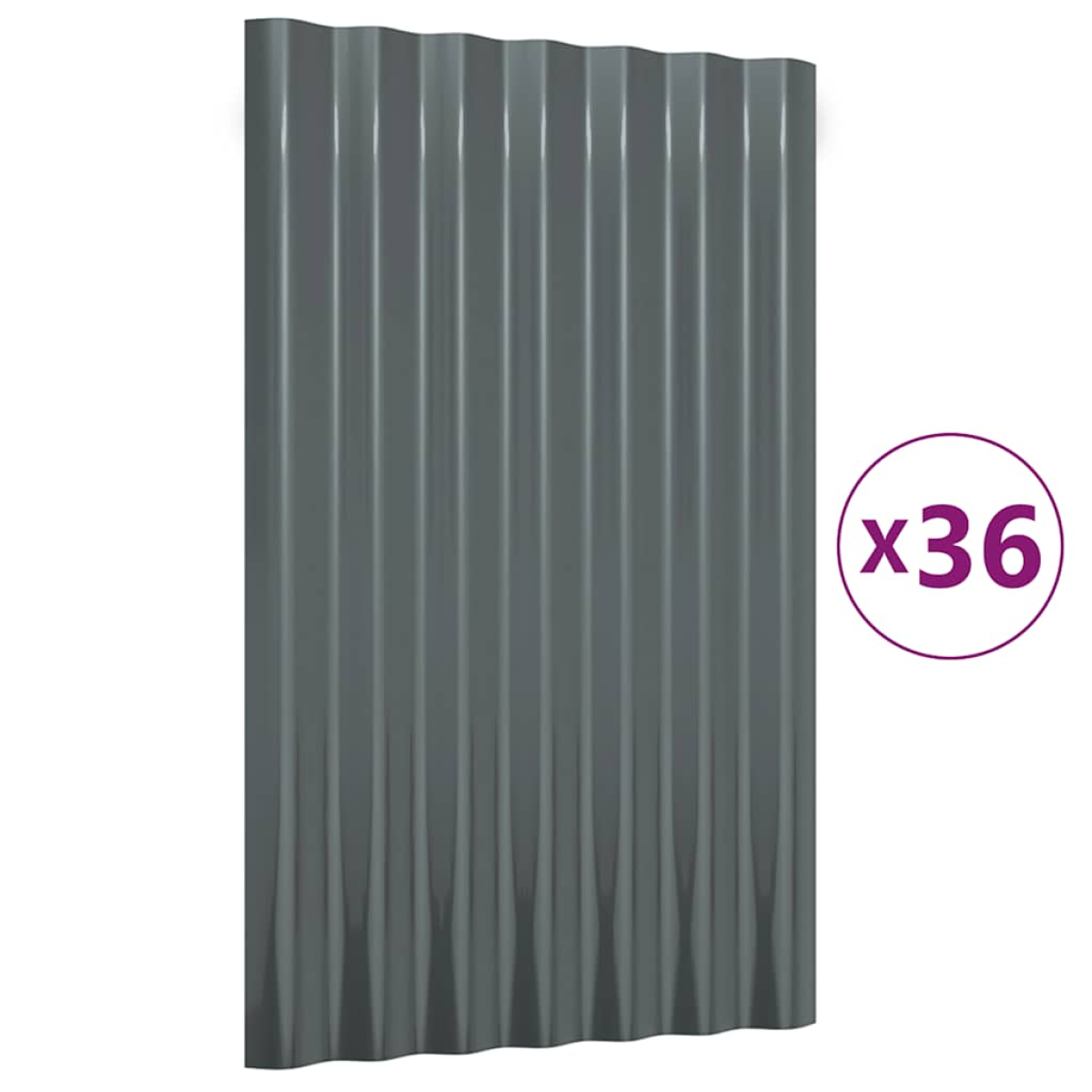 vidaXL Roof Panels 36 pcs Galvanised Steel Anthracite 60x36 cm