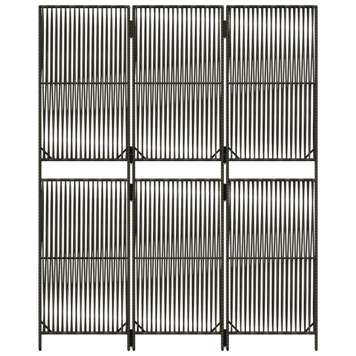 Decorate your home and divide up your space with this poly rattan room divider. Durable and easy to clean: Each privacy screen panel is made of poly rattan that is weather-resistant, durable and easy to clean.Stable frame: The powder-coated steel frame ensures sturdiness and stability.Flexible and easy to fold: Each partition is connected by galvanised hinges and can be easily folded to some extent according to your needs to save space.Line weaving design: Featuring a line weaving design, this room screen will give you a stylish and artistic way to increase privacy while also keeping the room airy and light.Multipurpose: The room divider screen is great for creating private space both indoors and outdoors, such as a bedroom, living room, office, etc. You can also place it in front of a window to block intense sunlight. Important note:In order to fold completely flat, you will need to disassemble the galvanised hinges.