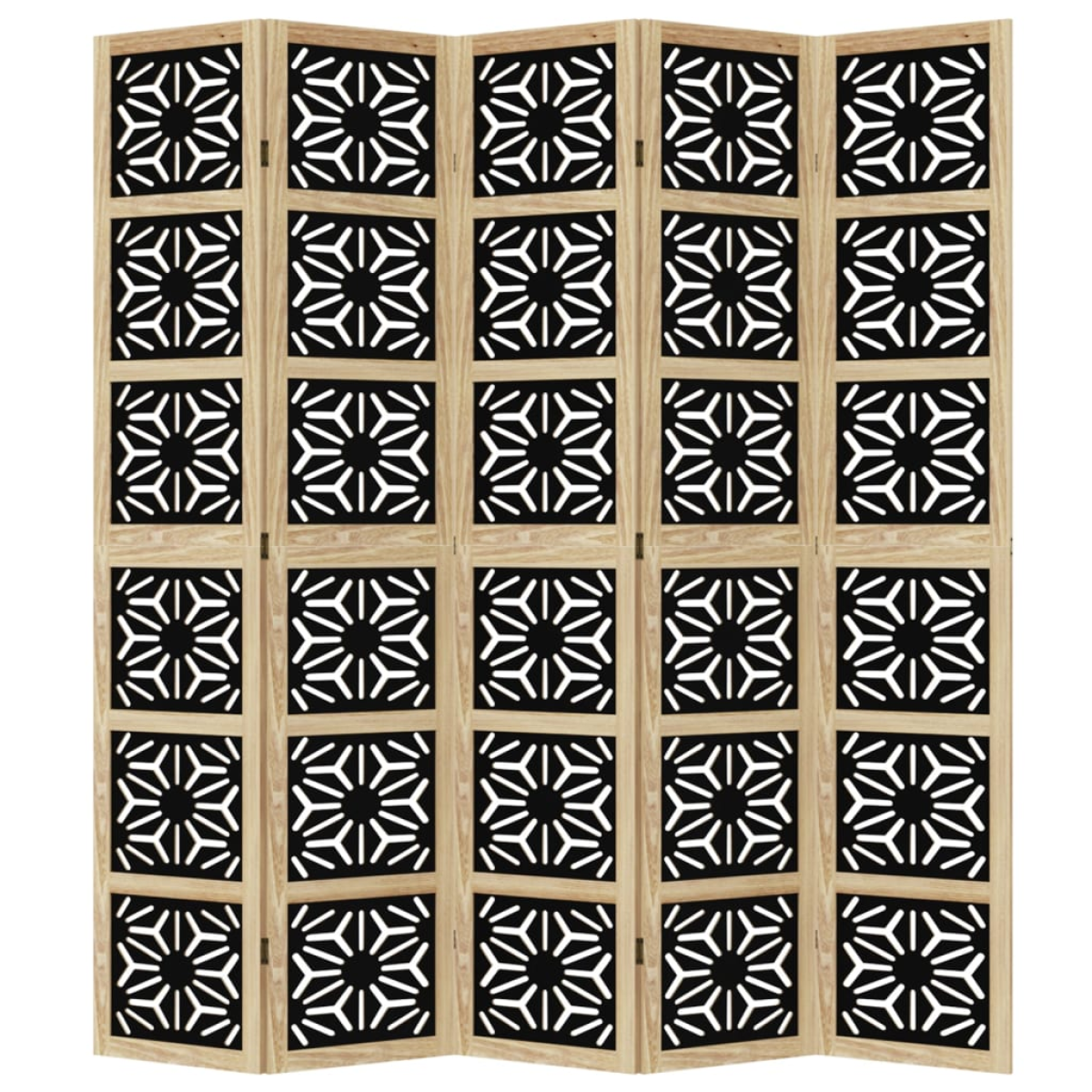 Bring elegance and an eye-catching decorative touch to your space with this charming room divider. Durable and easy to clean: The privacy screen is made from engineered wood, making it easy to clean and durable.Stable frame: The solid paulownia wood frame ensures sturdiness and stability. Solid paulownia wood is a beautiful natural material. Paulownia wood is highly resistant to bugs and rotting.Flexible and easy to fold: Each partition is connected by 3 metal hinges and the upper and lower panels are connected by hidden 2-in-1 hinges. So the room divider panel can be easily folded to some extent according to your needs to save space.Multipurpose: The room partition is great for creating private space in your bedroom, living room, office and other interiors. You can also place it in front of a window to block intense sunlightAttractive looking: Featuring a geometric cut-out design, this folding room divider adds character and decoration to the space. Warning:Only for indoor use.