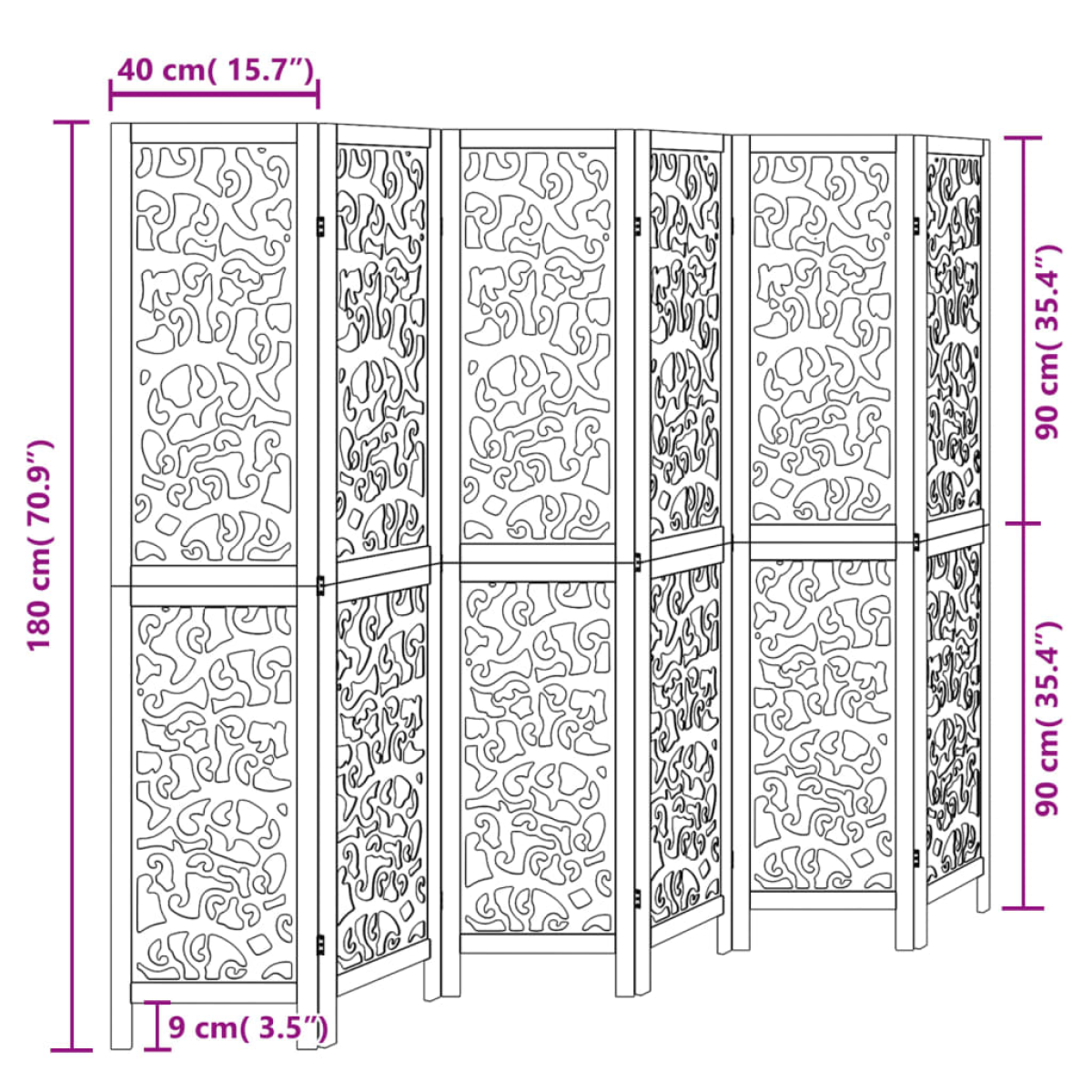 Bring elegance and an eye-catching decorative touch to your space with this charming room divider. Durable and easy to clean: The privacy screen is made from engineered wood, making it easy to clean and durable.Stable frame: The solid paulownia wood frame ensures sturdiness and stability. Solid paulownia wood is a beautiful natural material. Paulownia wood is highly resistant to bugs and rotting.Flexible and easy to fold: Each partition is connected by 3 metal hinges and the upper and lower panels are connected by hidden 2-in-1 hinges. So the room divider panel can be easily folded to some extent according to your needs to save space.Multipurpose: The room partition is great for creating private space in your bedroom, living room, office and other interiors. You can also place it in front of a window to block intense sunlight.Attractive looking: Featuring a delicate openwork looking, this folding room divider adds character and decoration to the space. Warning:Only for indoor use.