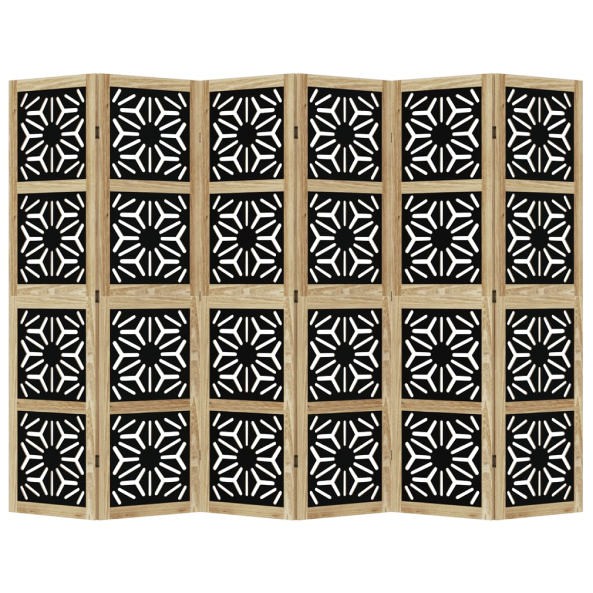 vidaXL Room Divider 6 Panels Brown and Black Solid Wood Paulownia