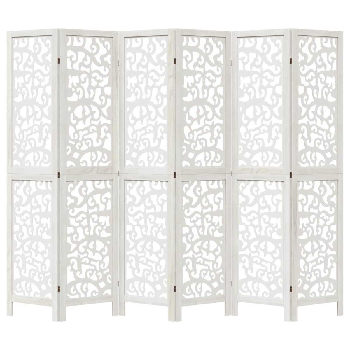 vidaXL Room Divider 6 Panels White Solid Wood Paulownia