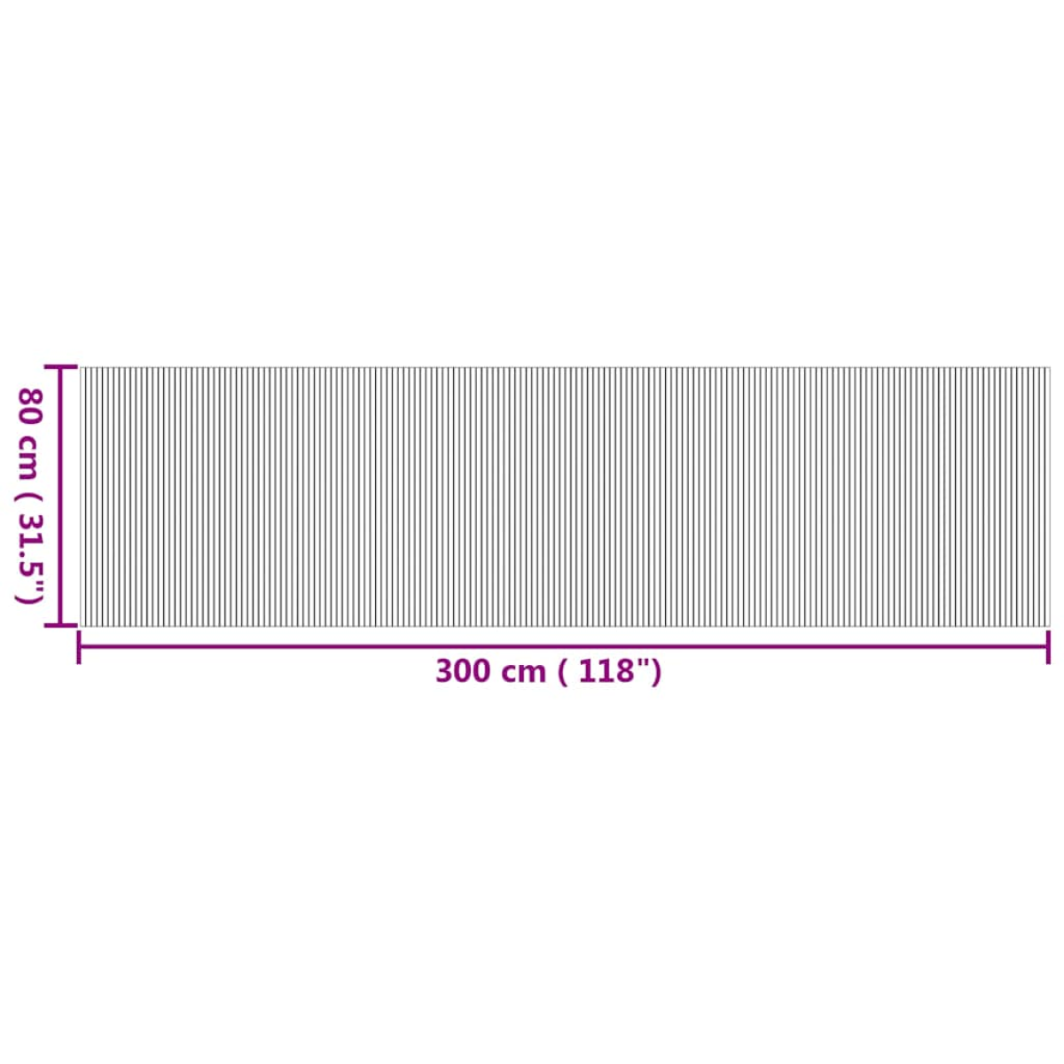 Get the natural look in your living room! This modern bamboo rug will make a great addition to any decor. Durable and long-lasting: As a natural material, bamboo boasts good breathability and a low odour. These qualities make bamboo rugs durable, water-resistant, and long-lasting.Anti-slip backing: This rug can be firmly fixed to the ground with anti-slip backing to protect you from slipping.Easy to clean and store: Made of natural, strong bamboo, this rug is easy to clean. It also can be rolled up for easy storage and transport.Neutral tones: Its neutral tones will blend well with a variety of interior styles. Good to know:The bamboo is a natural product and can show imperfections.Because it's a natural product, the width of bamboo slat may vary with +/- 1 mm and small differences are common.