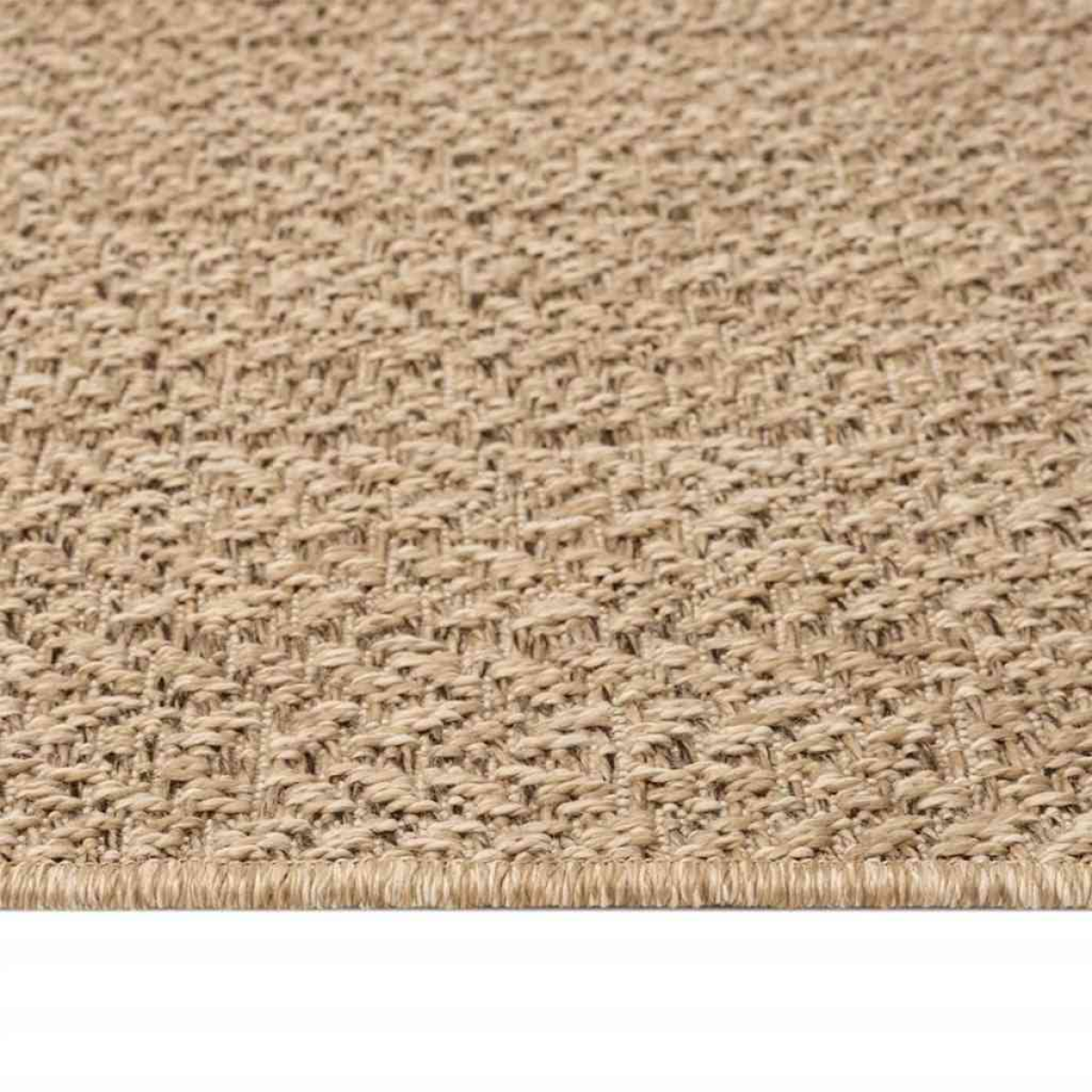 You won't have to worry about dirt and dust thanks to this rug, which creates a cosy ambience in both indoor and outdoor spaces. Durable material: Polypropylene (PP) is a popular plastic that is also one of the most used materials in outdoor furniture. It's lightweight, tough, and resistant to impact. Made of 100% PP, this rug is durable, portable, and low maintenance.Jute look: This outdoor rug comes in a jute look, infusing your interior with an alluring touch of natural beauty.Versatile usage: The door mat is not only suitable for outdoor use, such as patios, balconies, gardens or picnics in the park, but also for indoor use, offering stylish design and comfort.Easy cleaning: The floor mat is easy to clean. Spray it with a hose or sweep away dirt with water and air it dry. It does not accumulate water and is easy to dry. Good to know:The rug is packed in a box for easy transport. Allow some time for the product to straighten and flatten.An anti slip mat is recommended under this rug.Warning:Do not wash, bleach, tumble dry or iron.