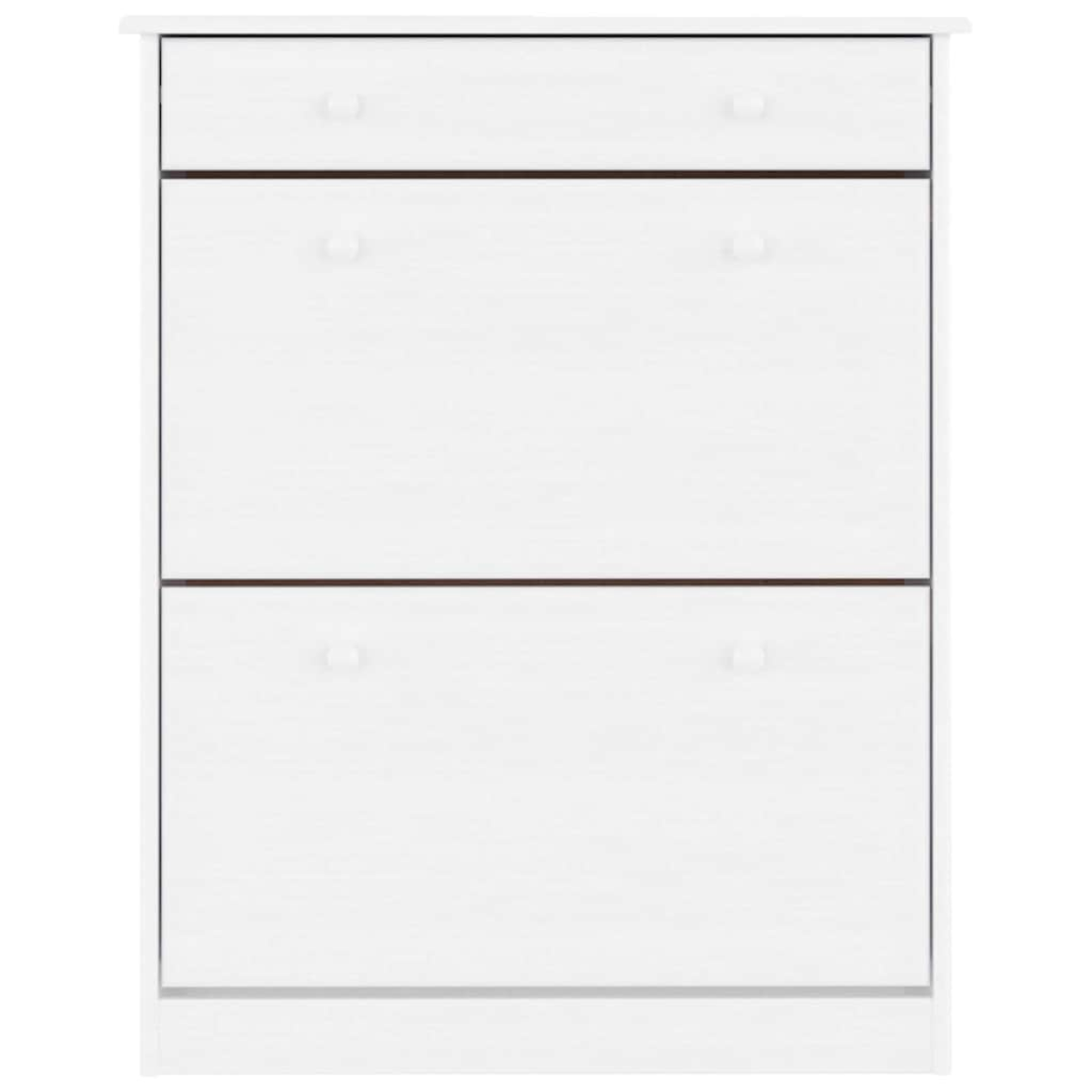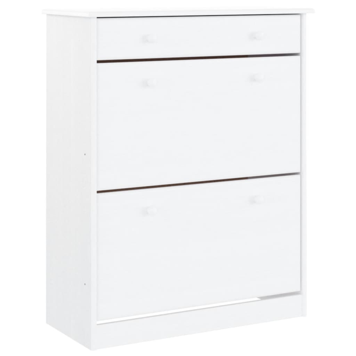 Keep your shoes away from dust and clutter to create a tidy environment for your home with this wooden shoe cabinet! Solid pine wood: Solid pine wood is a beautiful natural material. Pine wood has a straight grain, and the knots give the material its signature, rustic look. Made of solid pine wood, the shoe storage is durable and sturdy.Ample storage space: This shoe storage cabinet is designed with 2 flip doors and 1 drawer to keep your shoes and small things well organised.Wooden knobs: The shoe cupboard comes with wooden knobs that make it easy to open and close the shoe storage cabinet while adding extra beauty.Easy to maintain: The shoe organiser is easy to clean with a damp cloth and requires less maintenance. Warning:To prevent it being overturned, this product must be used with the provided wall attachment device.