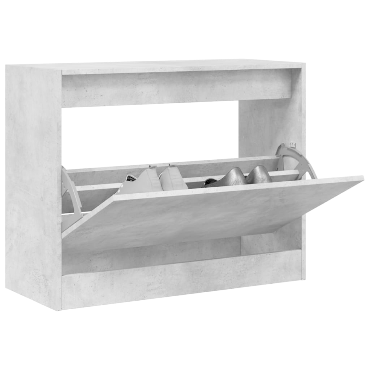 This shoe cabinet is an excellent choice to store your shoes in an organised way, especially for tight and narrow spaces thanks to its compact design. Durable material: The engineered wood is of exceptional quality with a smooth surface and also features strength, stability, and resistance to moisture.Ample storage space: This shoe rack features 1 flip drawer with 2 layers, providing ample space to keep your shoes within reach and well organised.Practical top: The sturdy top of the shoe cupboard is ideal for displaying decorative objects, photo frames, or potted plants.Space-saving design: The slim shoe storage cabinet is designed to perfectly fit small spaces like entryway, hallway, mudroom, etc. Warning:To prevent it from tipping over, this product must be used with the provided wall attachment device.