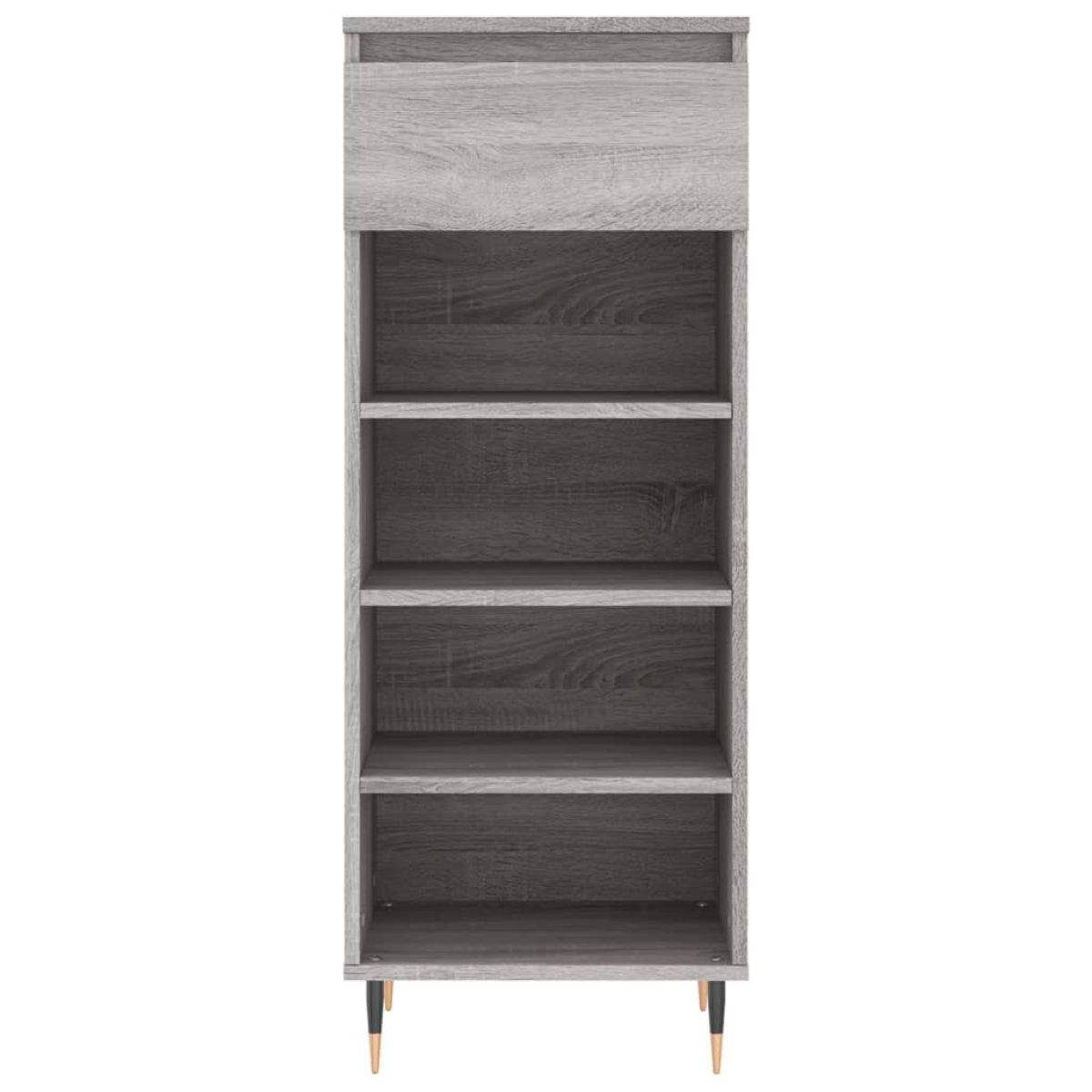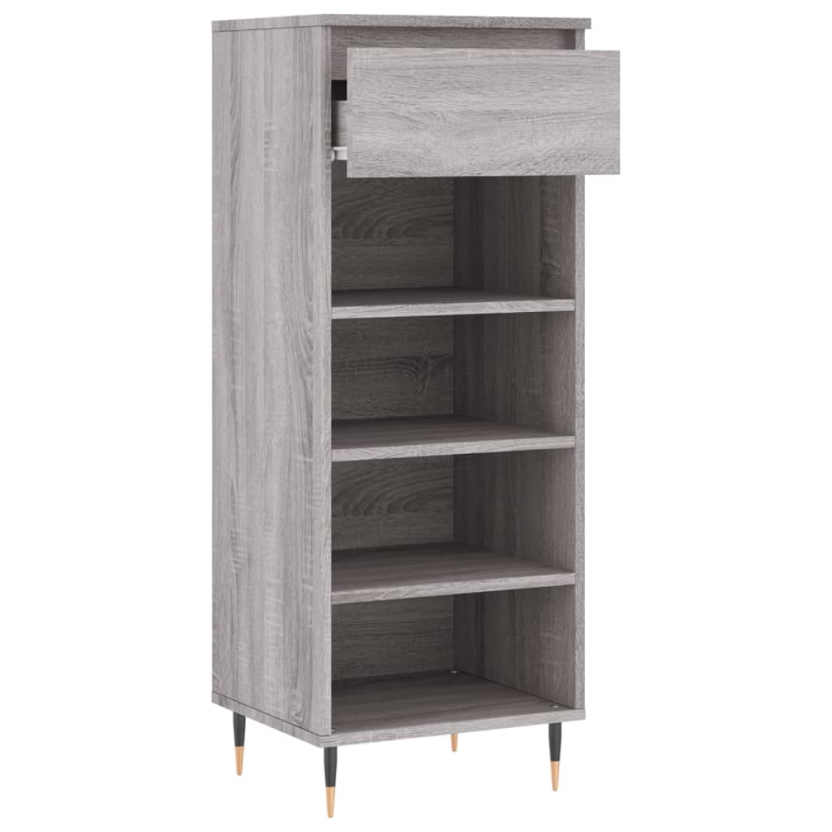 Keep your shoes away from dust and cluttering to create a tidy environment with this elegant shoe cabinet! Durable material: The engineered wood is of exceptional quality with smooth surface and also features strength, stability and resistance to moisture. Made of engineered wood, the shoe rack is easy to clean.Ample storage space: With 4 open compartments and 1 drawer, the shoe storage provides ample storage space for keeping your shoes and other items well organised.Sturdy top: The top of the shoe cupboard is ideal for displaying decorative objects, photo frames, or potted plants.Metal legs: The metal legs add a modern and calm style to your interior while ensuring stability. Warning:To prevent it being overturned, this product must be used with the provided wall attachment device.