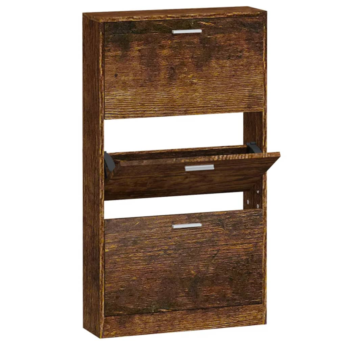 This shoe cabinet, in a modern and stylish design, is an excellent piece of furniture to store your shoes in an organised way. It is suitable for the entrance, hallway, living room, bedroom and other places you want it to be. Durable material: The engineered wood is of exceptional quality with smooth surface and also features strength, stability and resistance to moisture.Ample storage space: This shoe rack features 3 drawers, providing ample space to keep your shoes within reach and well organised.Pull-down drawer design: With its pull-down drawer design, this shoe storage cabinet is easy to open and close. Note:Each product comes with an assembly manual in the box for easy assembly. Warning:In order to prevent overturning, this product must be used with the wall attachment device provided