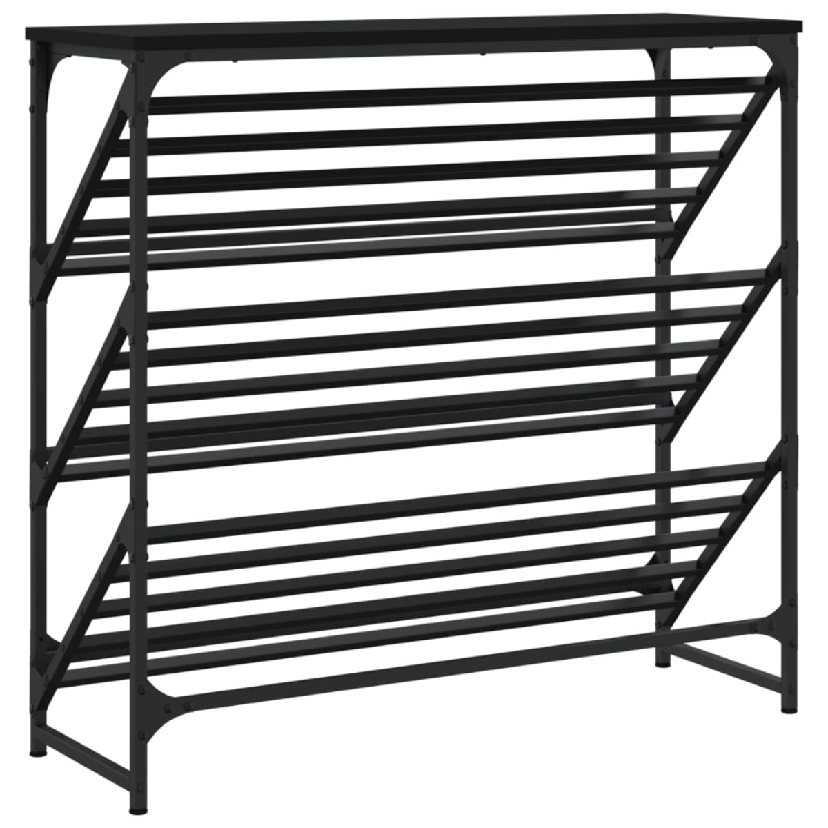 This classic shoe rack for the entryway is exceptionally beautiful and can make your room more organised. Durable material: The engineered wood is of exceptional quality with smooth surface and also features strength, stability and resistance to moisture.Stable frame: The black powder-coated steel base provides additional stability and sturdiness for this shoe storage.Ample storage space: This shoe cabinet has 3-tier sloping shelves, providing storage space for you to arrange shoes neatly.Sturdy top: You can place your bag and favourite decorative items on the top of this shoe organiser. Warning:To prevent it being overturned, this product must be used with the provided wall attachment device.