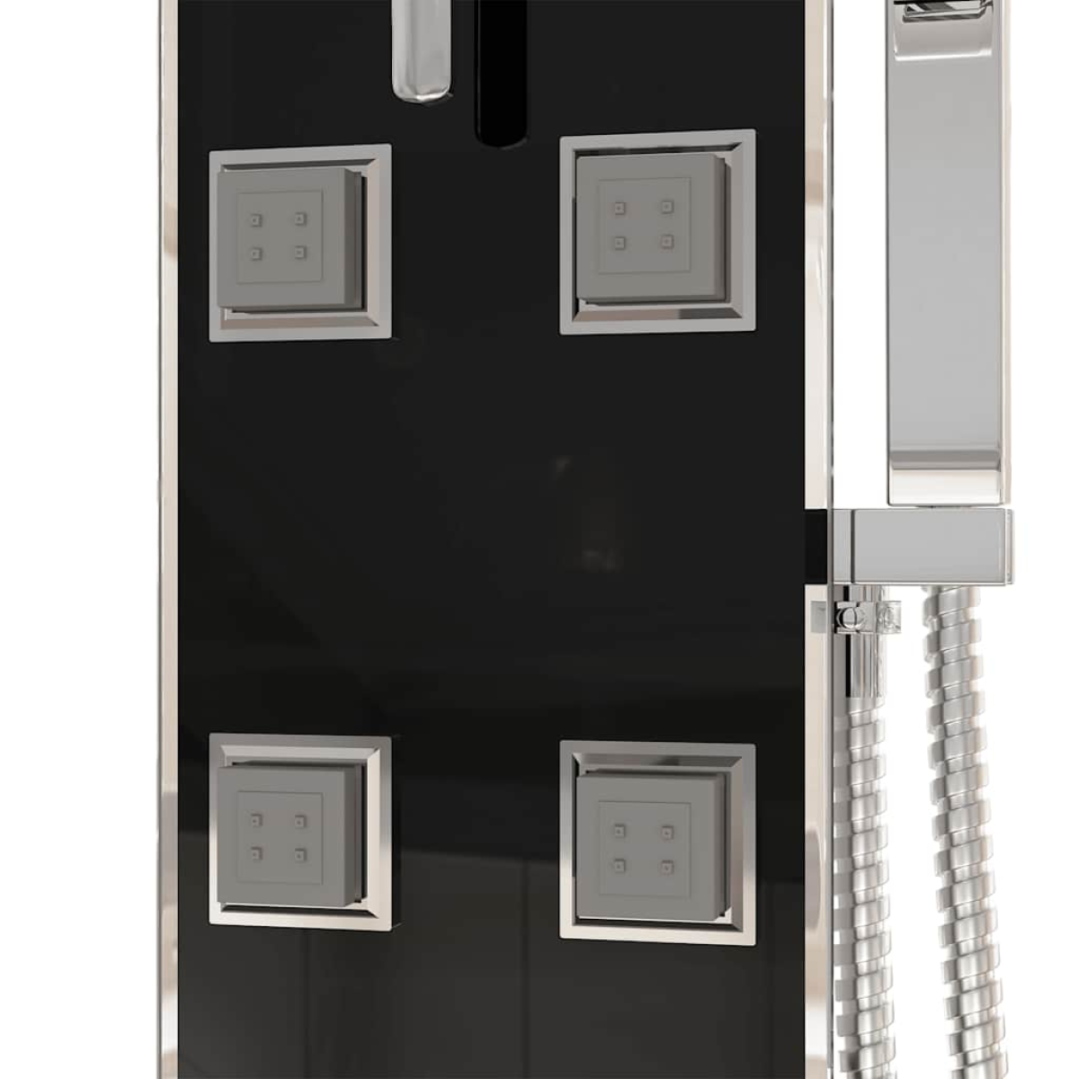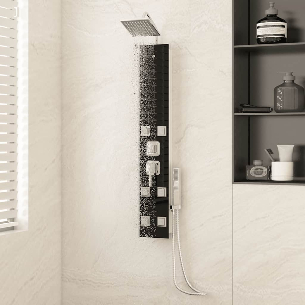 This multifunctional shower panel system has a stylish design and will make a great addition to your bathroom. The shower tower is made of stainless steel and tempered glass. Tempered glass is produced with a controlled thermal or chemical treatment, which makes it more durable and safe compared to normal glass. It has three functions of showering mode: rain shower, massage spray and handheld shower, which can be easily selected. The silicone nozzles are resistant to limescale buildup. Immerse yourself in a truly relaxing shower experience and enjoy the modern style of this beautifully designed shower panel system!