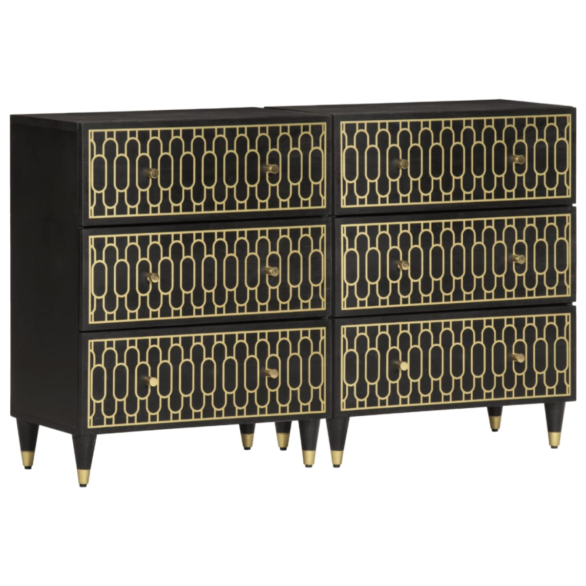 These side cabinets, featuring a timeless look, are meant to be an excellent addition to your home. Solid mango wood: Solid mango wood is a strong, tropical hardwood that makes sturdy furniture. Its beautiful wood grains make every piece of furniture slightly different from the next. Made of solid mango wood, the cabinet is durable and stable.Ample storage space: The cupboard offers ample storage space for keeping your various daily essentials well-organised and within easy reach.Displaying function: The top of the storage cabinet is great for displaying your decorative items, photo albums or small plants.Sturdy legs: The iron legs add the side board's sturdiness and stability.Retro style: The home organiser with hand-carved floral patterns brings the luxury of retro style to your interior, being the focal point of your room. Good to know:Each item is unique with variations in colours and grains. The delivery is random, ensuring the exclusivity and individuality of your product. Warning:To prevent it from tipping over, this product must be used with the provided wall attachment device.