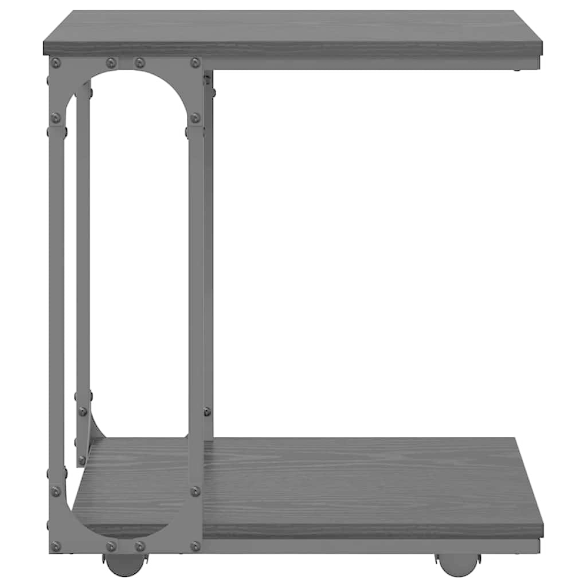 This C-Shape Side Table with Wheels brings a rustic touch to your living room setup, designed for both functionality and style. Its warm rustic finish and compact size make it the perfect furniture piece for urban spaces, where every square inch counts. Easily maneuverable thanks to its lockable wheels, it slides effortlessly into place, offering a handy surface for drinks, lamps, or decorative pieces while doubling as a practical storage solution. Its engineered wood surface and metal frame promise durability and longevity without compromising on aesthetic appeal. Material Composition: The table boasts a classic engineered wood top complemented by a powder-coated metal frame. This combination ensures stability and long-lasting charm, providing a matte finish that adapts harmoniously to rustic interiors. The high-quality materials ensure resistance to daily wear, maintaining its sophisticated appearance for years. Integrated Storage Components: Equipped with board type shelves, the side table offers functional storage by minimizing clutter and maximizing utility. These shelves provide a perfect spot for storing books, magazines, or decorative items, combining convenience with style to enhance the overall look of a living area. Durable Framework: A robust metal frame underpins this side table, ensuring a firm and resilient support system. The powder coating prevents and adds an aesthetic layer that blends seamlessly with the engineered wood surface. This thoughtful design offers a well-suited choice for heavy usage in cozy and bustling homes alike. Multifunctional Design: The end table stands out for its C-shape design with wheels, a feature crafted to meet diverse needs. It’s perfect for hosting your favorite beverage next to a chair or as an adjacent companion to a sofa in your living room, granting flexibility and easy access. Care Instructions: To maintain the table's sheen and longevity, simply wipe its surface with a damp cloth. Avoid using harsh chemicals or abrasives, preserving its finish while ensuring the piece remains an elegant fixture in your space.