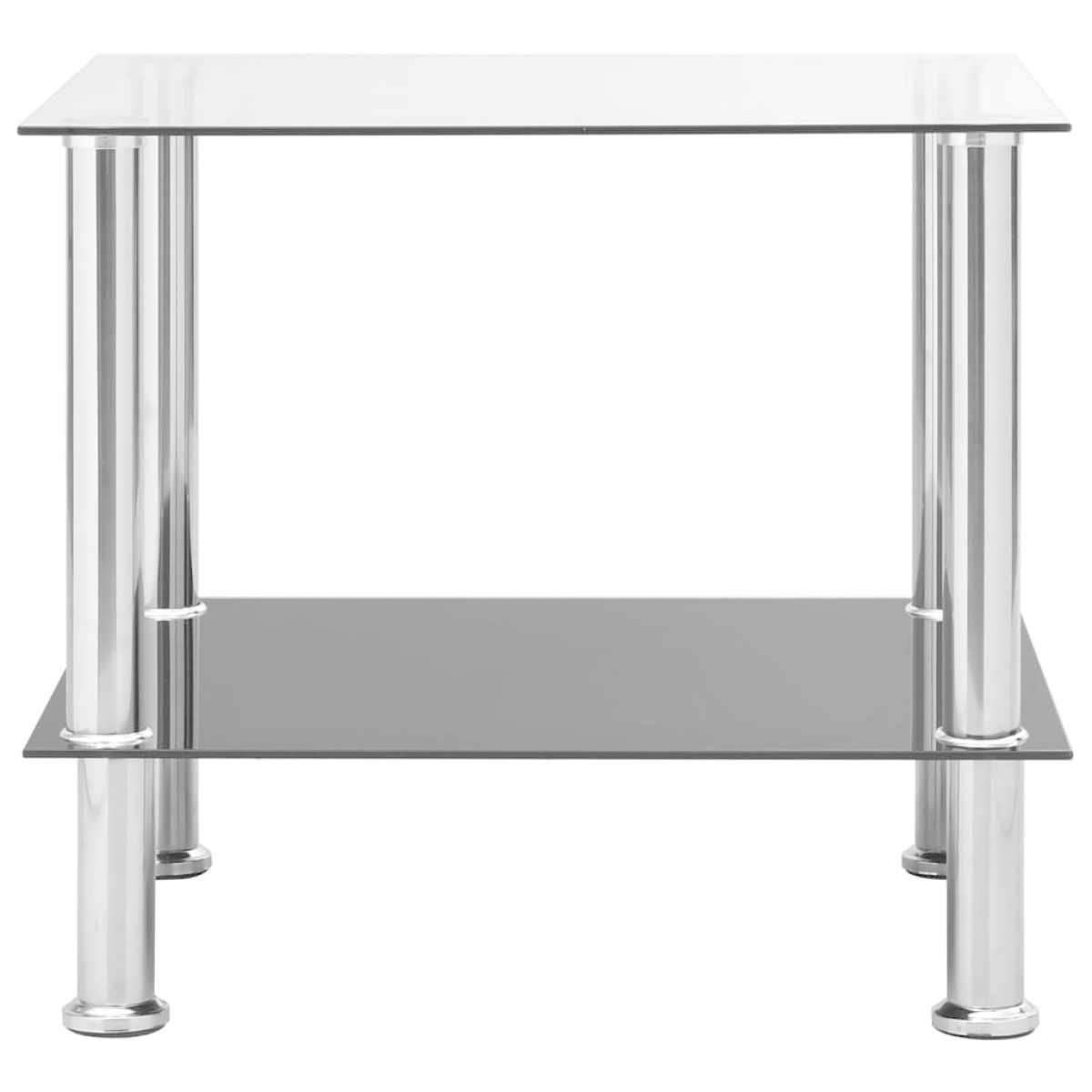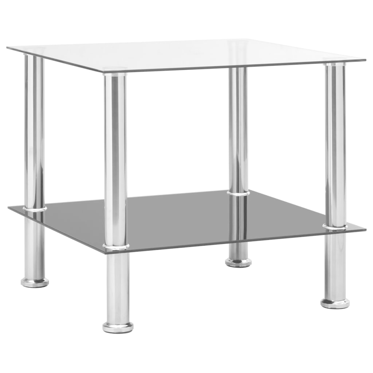 This side table features a simple yet stylish design and suits any decor. This end table has tempered glass top and is supported by stainless steel legs, making it exceedingly sturdy and stable. The glass table is easy to clean with a damp cloth. What's more! The underneath shelf provides you with extra storage room.