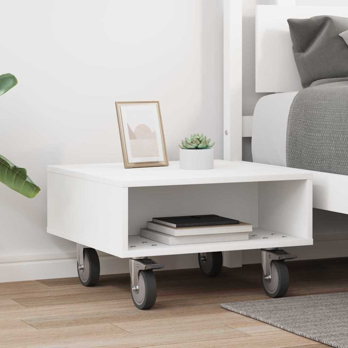 vidaXL Side Table with Wheels White 50.5 x 50 x 30 cm Engineered Wood