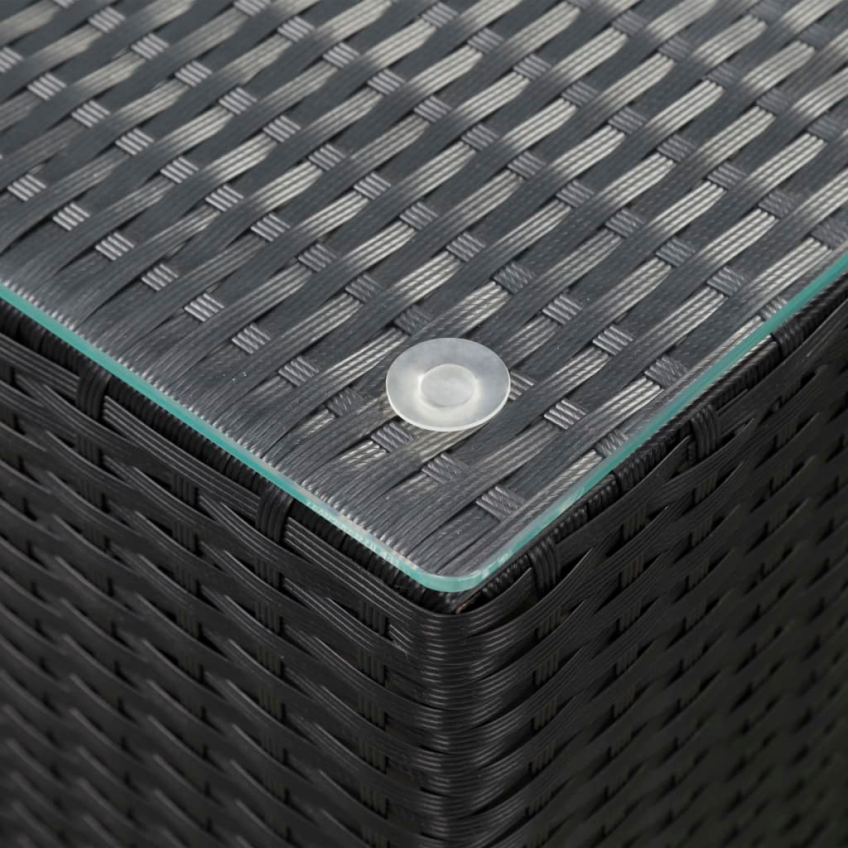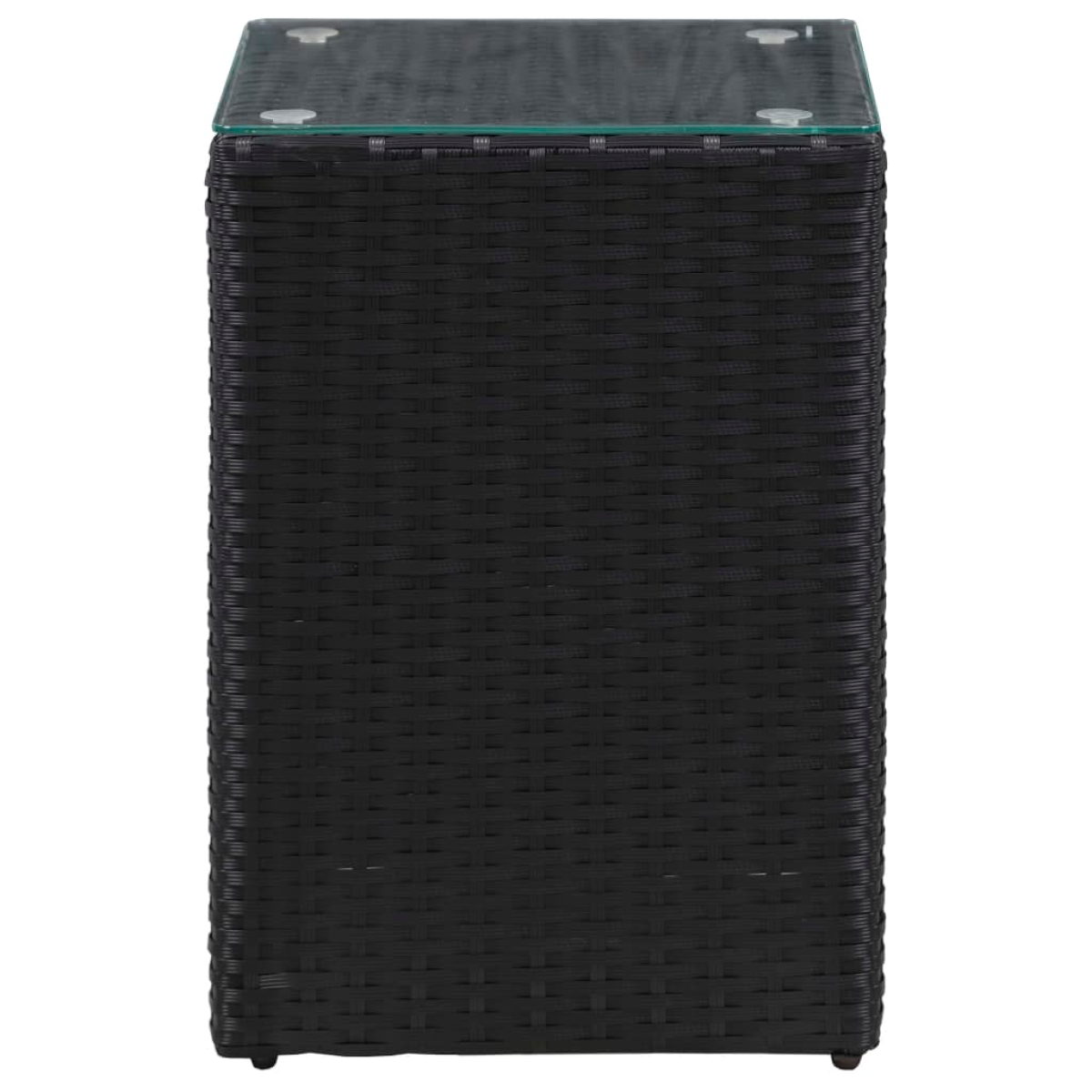 vidaXL Side Tables 3 pcs with Glass Top Black Poly Rattan