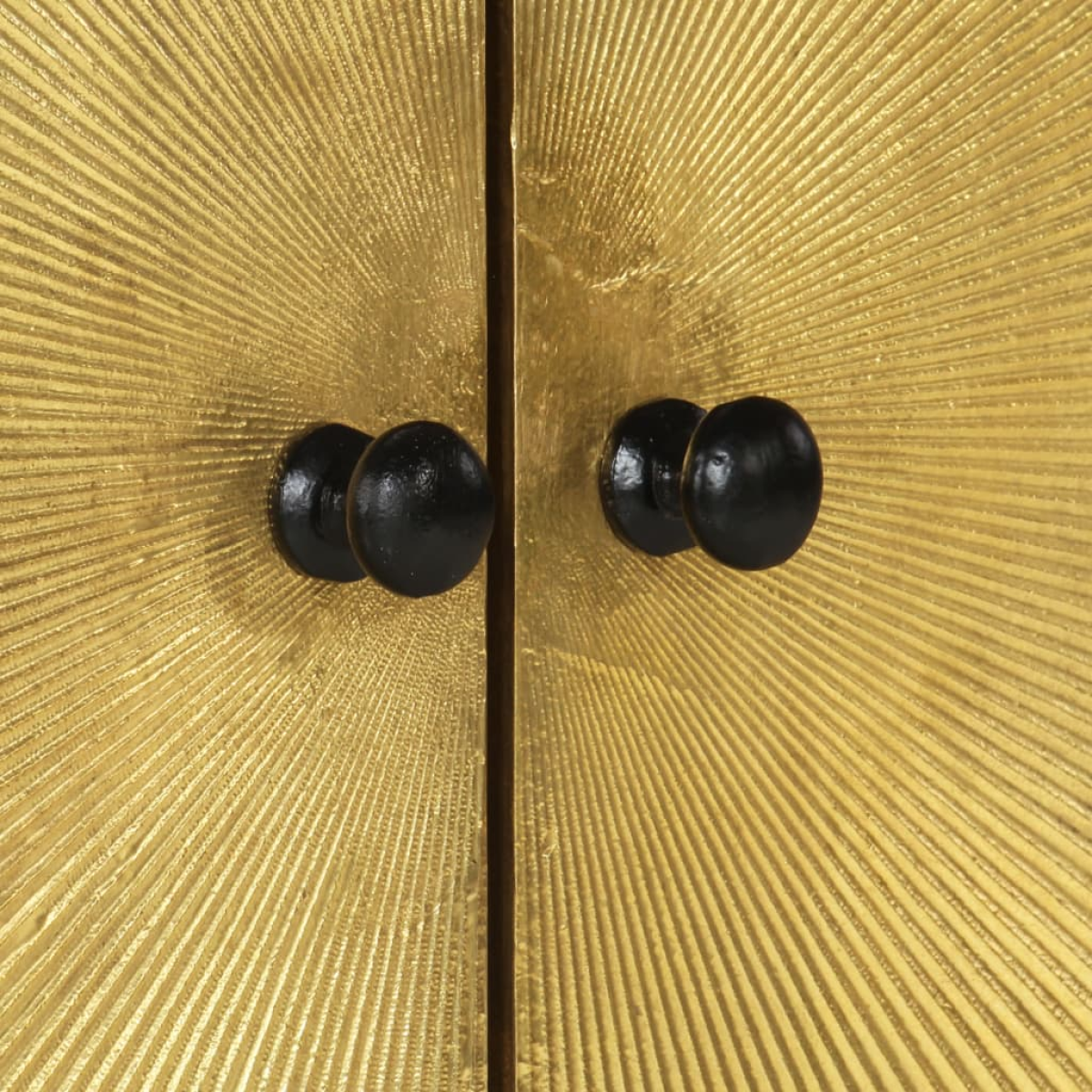 This classic wooden sideboard, featuring a timeless look, is meant to be an excellent addition to your home. Durable material: Solid mango wood is a strong, tropical hardwood that makes sturdy furniture. Its beautiful wood grains make every piece of furniture slightly different from the next.Ample storage space: Equipped with compartments, the cabinet offers ample storage space for keeping your various daily essentials well organised and within easy reach.Displaying function: The top of the cupboard is great for displaying your decorative items, photo albums or small plants.Practical doors: Keep your essentials free from dust by hiding them behind the doors. Warning:To prevent overturning, this product must be used with the wall attachment device provided.Note:The colours may vary from piece to piece, making each piece unique and slightly different from the next. The delivery is random.
