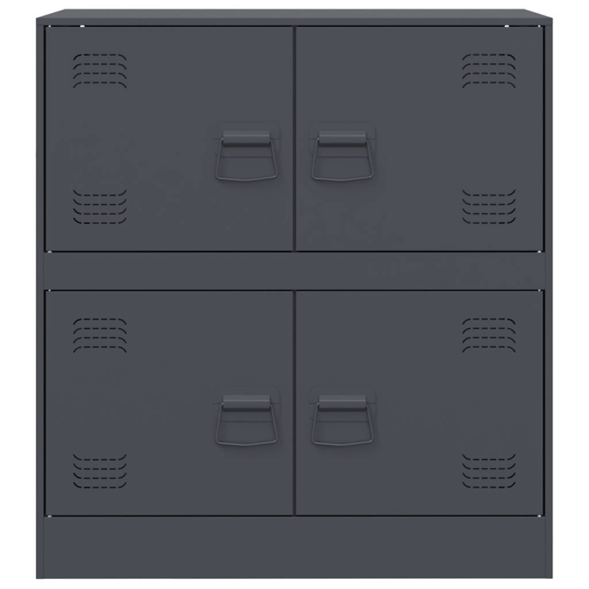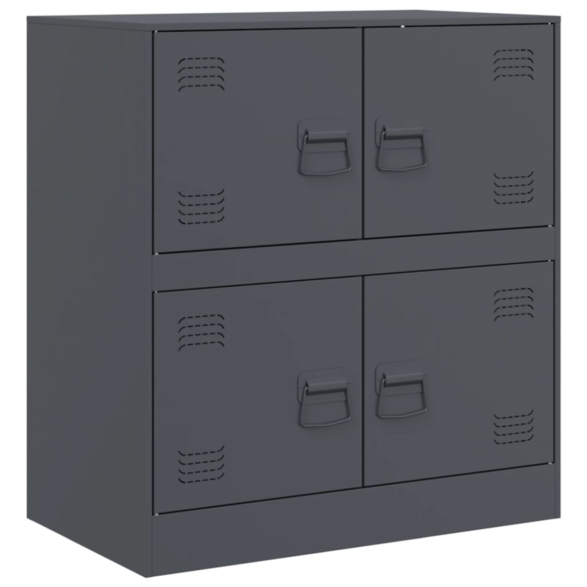 This sturdy sideboard is designed to be a focal point of your room with a trendy yet practical design. Stable material: The sideboard's frame is made of cold-rolled steel. Cold-rolled steel is a kind of low-carbon steel produced by a "cold rolling" method and processed at near normal room temperatures. Cold-rolled steel has a smoother surface, greater strength, and higher precision.Ample storage space: This sideboard offers handy storage space for keeping your magazines, books, remote controls and other small items well-organised and within reach.Easy to maintain: The table is easy to clean with a damp cloth and requires less maintenance.Practical handle: The sideboard comes with 4 handles that make it easy to open and close the cabinet while also adding to extra beauty. Warning:To prevent it from tipping over, this product must be used with the wall attachment device (not provided).