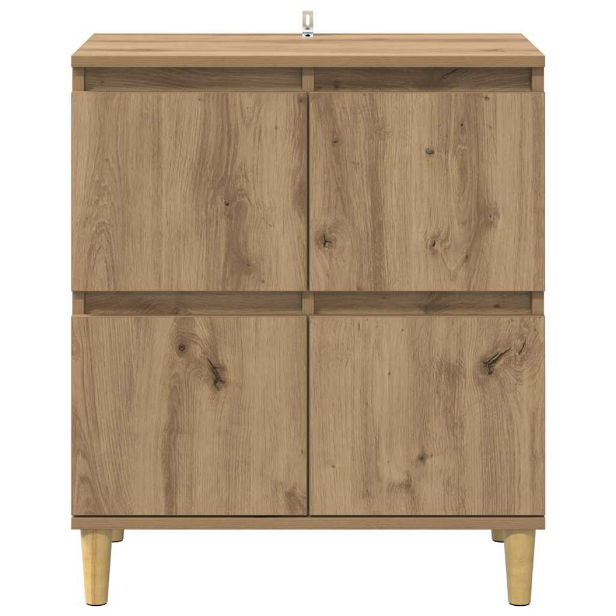 This Engineered Wood Sideboard redefines storage in a chic, rustic design, expertly crafted to balance aesthetics and functionality. The rectangular shape and soothing beige legs effortlessly integrate into any dining room or living space. As you explore its ample interior, you'll find it not only holds your essentials but adds a touch of elegance with its engineered wood craftsmanship. Engineered Wood Construction Constructed entirely with engineered wood, this sideboard ensures stability and longevity. The material's smooth surface adds visual appeal and is resistant to daily wear and tear, making it perfect for household environments. Convenient Hinge Doors The inclusion of hinge doors provides easy access to the contents stored inside. Their design complements the sideboard's robust yet refined character, facilitating smooth opening and closing. Spacious Interior Designed with ample storage, the sideboard caters to diverse needs, from storing dinnerware to keeping miscellaneous items organized. Its sufficient compartment space supports a clutter-free room, enhancing the home's overall ambiance. Rustic Tapered Legs Its tapered legs offer a refined rustic touch. These legs add an understated elegance, giving the piece a subtle, elevated look. They also provide dependable support to withstand daily use. Easy Maintenance The surface can be maintained effortlessly by wiping with a damp cloth. This practical advantage makes it suitable for families and maintains its aesthetic charm over time.
