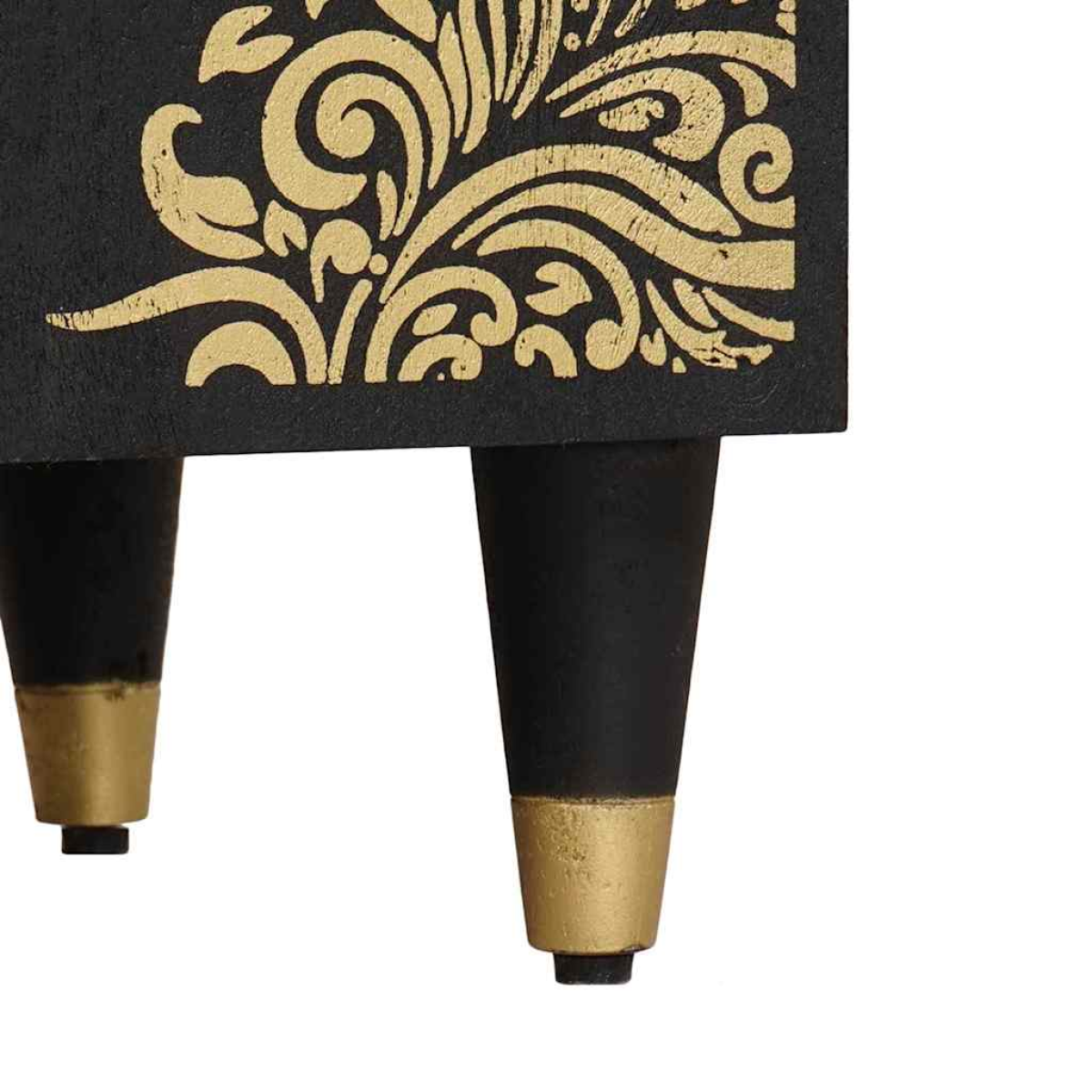 This Modern Bathroom Sideboard transforms any living room, exuding an aura of elegance through its sleek design and functional use. Envisioned for modern spaces, its rectangular silhouette adds visual appeal, complementing minimalist interiors while providing ample storage for daily essentials and decor. Versatile and aesthetic, it fits seamlessly in situations demanding both style and space economy. Premium Materials: Crafted from solid mango wood and engineered wood, this sideboard combines durability with an appealing aesthetic. The solid mango wood adds a touch of elegance, known for its dense grain and unique variation in patterns. Engineered wood provides structural reliability, ensuring that the sideboard stands the test of time. Together, these materials create a robust piece that promises longevity in any indoor setting. Elegant Design: The sideboard features a stunning gold screen-printed design, adding a glamourous touch that elevates its visual appeal. The intricate pattern brings luxury into the everyday, transforming a functional piece into an art statement that captures attention. Whether it's in the living room or bedroom, the design communicates opulence and sophistication. Sturdy Components: Equipped with understated brass knobs and legs, the sideboard guarantees both stability and ease of use. The brass material not only adds a hint of luxury but also supports the furniture's functionality. The cylindrical legs offer strong support, ensuring the piece remains beautifully planted while accommodating various weights and items. Functional Doors: Featuring smooth flush doors, the sideboard allows effortless access to stored items while maintaining a seamless surface that complements modern styles. The doors'clean lines and simplicity highlight the sideboard's sophisticated design, making it a versatile piece for diversely styled interiors. Care &Maintenance: To maintain its premium look, regularly wipe the sideboard with a dry cloth. This easy maintenance regimen ensures a lasting shine and keeps the furniture looking fresh and new over the years, making it a hassle-free addition to any modern home.