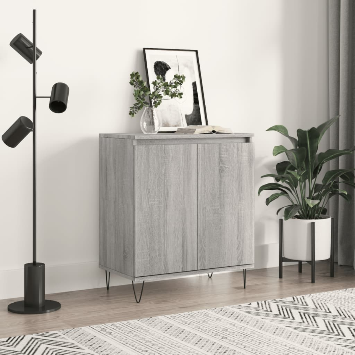 This trendy sideboard, featuring a timeless look, is meant to be an excellent addition to your home. Durable material: The engineered wood is of exceptional quality with smooth surface and also features strength, stability and resistance to moisture. Made of engineered wood, the storage cabinet is easy to clean with a damp cloth.Ample storage space: The buffet offers ample storage space for keeping your various daily essentials well organised and within easy reach.Displaying function: The top of the sideboard cabinet is perfect for displaying your decorative items, picture frames, and potted plants.Iron legs: The iron legs of the side cabinet ensure sturdiness and stability. Warning:To prevent it being overturned, this product must be used with the provided wall attachment device.