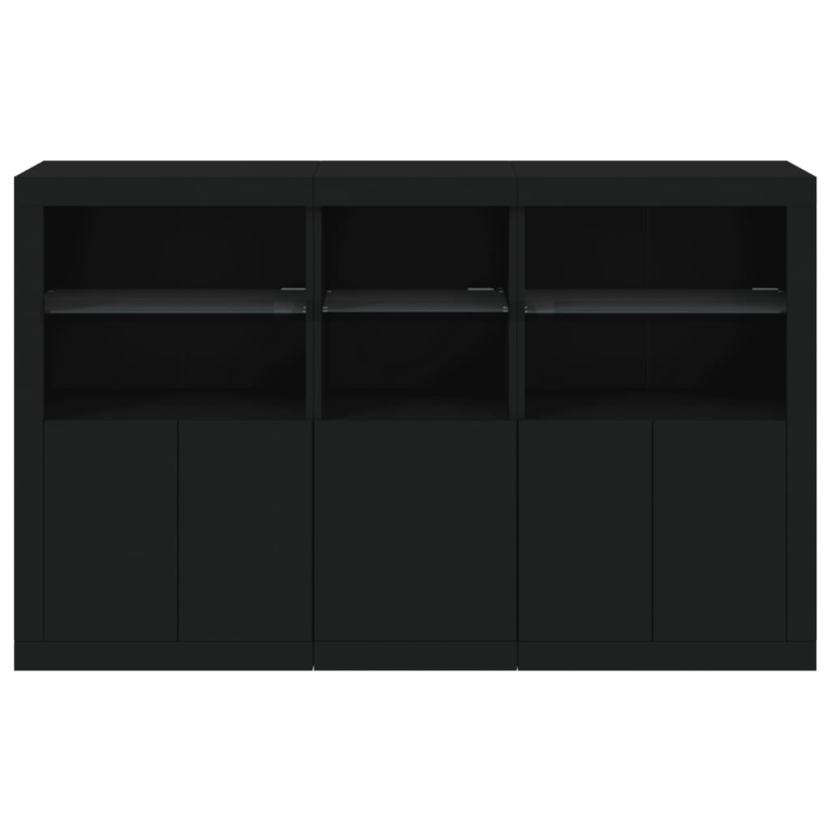 Decorate your room with this modern sideboard with LED lights, it easily blends with furniture in any style at your house. Durable material: The engineered wood is of exceptional quality with smooth surface and also features strength, stability and resistance to moisture.RGB LED lights: The buffet is equipped with vibrant RGB LED lights. With various customisable menus, you can effortlessly change the colour of the lights and even set them to adjust automatically. These LED lights not only enhance the contemporary look of the sideboard cabinet but also add to its trendy appeal.Ample storage space: The storage cabinet offers plenty of space to keep your everyday items neatly arranged and easily accessible.Displaying function: The sturdy top of the hallway cabinet is ideal for displaying decorative objects, photo frames, or potted plants.Practical doors: Keep your essentials free from dust by hiding them behind the doors of the side cabinet. Good to know:The product has a USB connector that requires a certified 5V USB power source (not included). Warning:To prevent it being overturned, this product must be used with the provided wall attachment device.