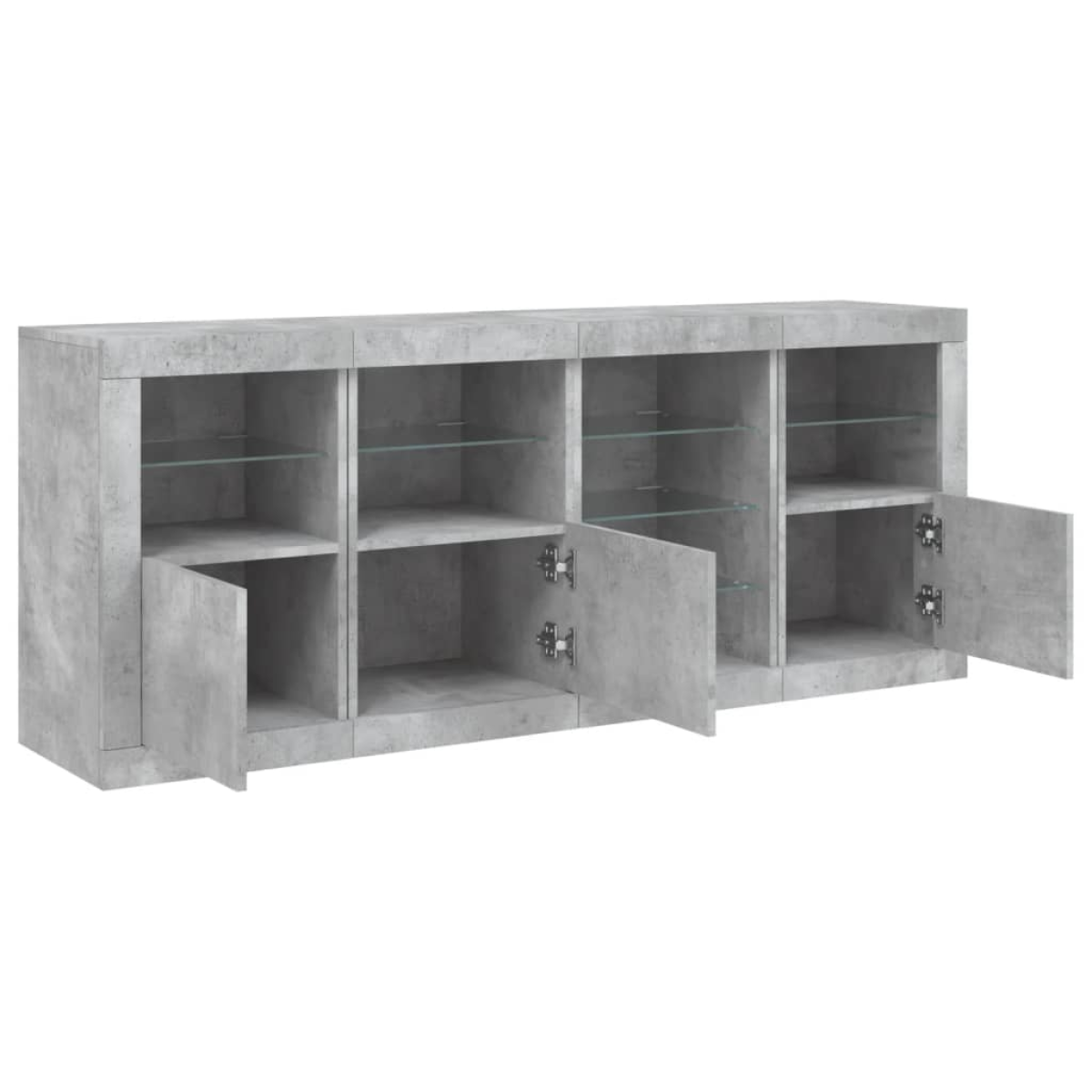 Decorate your room with this modern sideboard with LED lights, it easily blends with furniture in any style at your house. Durable material: The engineered wood is of exceptional quality with smooth surface and also features strength, stability and resistance to moisture.RGB LED lights: The buffet is equipped with vibrant RGB LED lights. With various customisable menus, you can effortlessly change the colour of the lights and even set them to adjust automatically. These LED lights not only enhance the contemporary look of the sideboard cabinet but also add to its trendy appeal.Ample storage space: The storage cabinet offers plenty of space to keep your everyday items neatly arranged and easily accessible.Displaying function: The sturdy top of the hallway cabinet is ideal for displaying decorative objects, photo frames, or potted plants.Practical doors: Keep your essentials free from dust by hiding them behind the doors of the side cabinet. Good to know:The product has a USB connector that requires a certified 5V USB power source (not included). Warning:To prevent it being overturned, this product must be used with the provided wall attachment device.