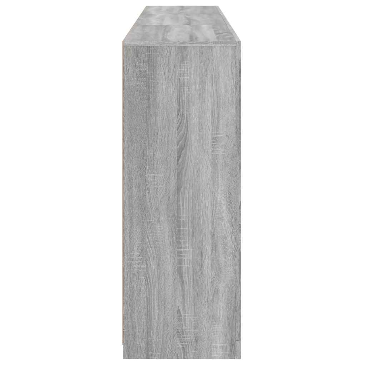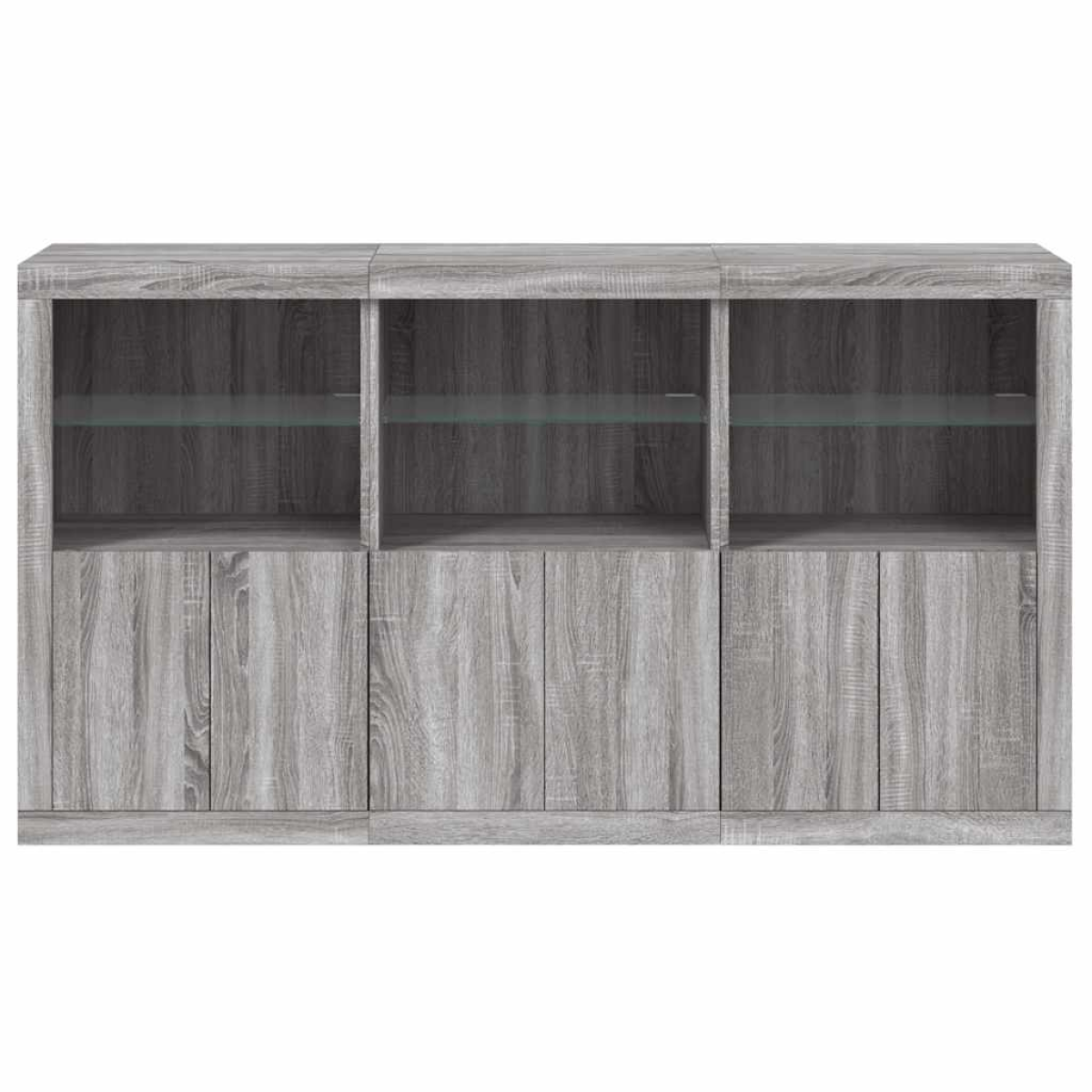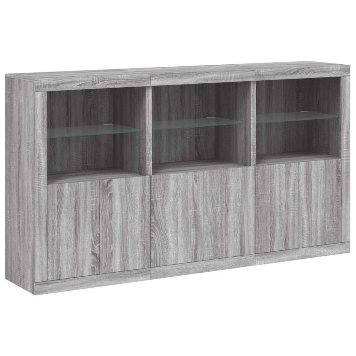 Decorate your room with this modern sideboard with LED lights, it easily blends with furniture in any style at your house. Durable material: The engineered wood is of exceptional quality with smooth surface and also features strength, stability and resistance to moisture.RGB LED lights: The buffet is equipped with vibrant RGB LED lights. With various customisable menus, you can effortlessly change the colour of the lights and even set them to adjust automatically. These LED lights not only enhance the contemporary look of the sideboard cabinet but also add to its trendy appeal.Ample storage space: The storage cabinet offers plenty of space to keep your everyday items neatly arranged and easily accessible.Displaying function: The sturdy top of the hallway cabinet is ideal for displaying decorative objects, photo frames, or potted plants.Practical doors: Keep your essentials free from dust by hiding them behind the doors of the side cabinet. Good to know:The product has a USB connector that requires a certified 5V USB power source (not included). Warning:To prevent it being overturned, this product must be used with the provided wall attachment device.