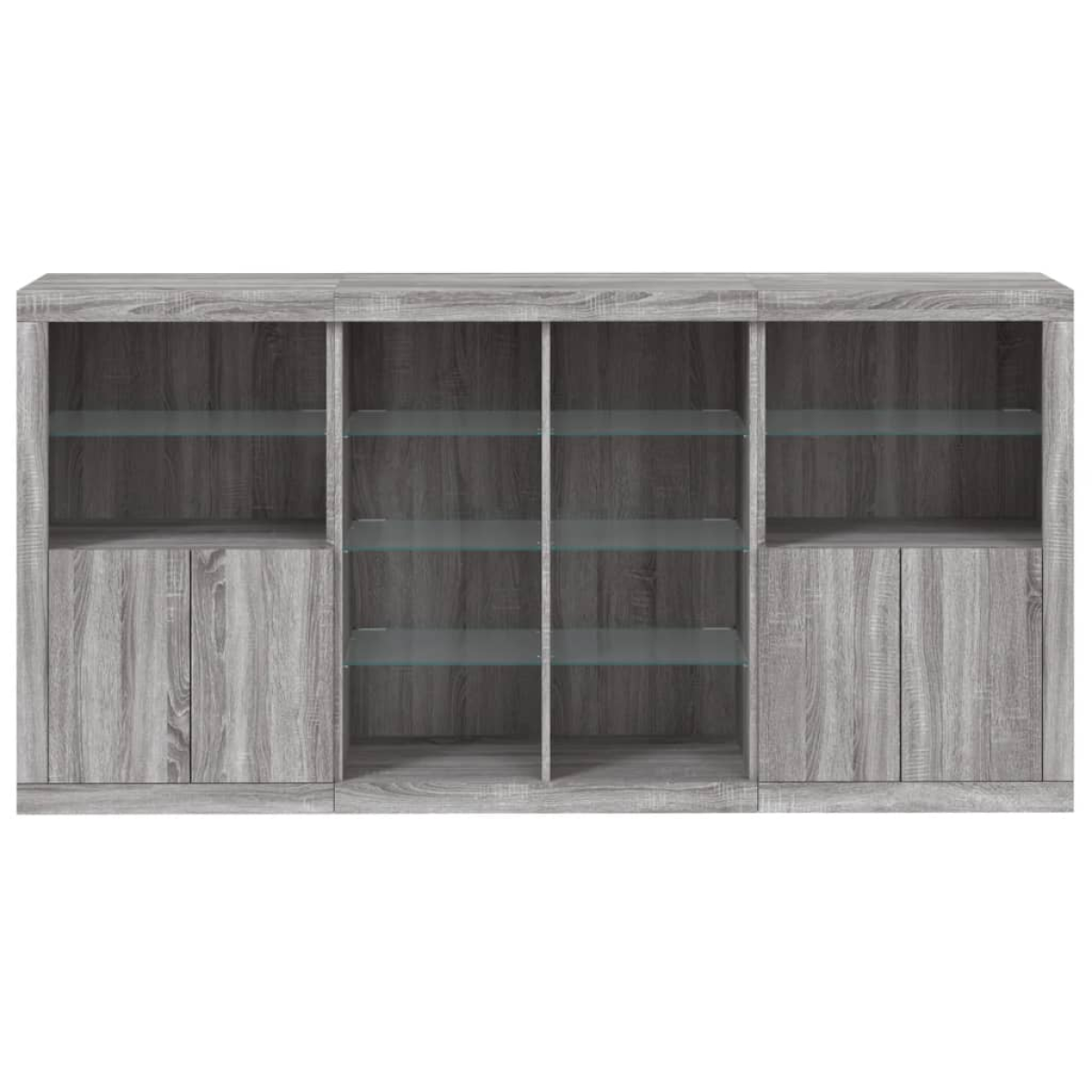 Decorate your room with this modern sideboard with LED lights, it easily blends with furniture in any style at your house. Durable material: The engineered wood is of exceptional quality with smooth surface and also features strength, stability and resistance to moisture.RGB LED lights: The buffet is equipped with vibrant RGB LED lights. With various customisable menus, you can effortlessly change the colour of the lights and even set them to adjust automatically. These LED lights not only enhance the contemporary look of the sideboard cabinet but also add to its trendy appeal.Ample storage space: The storage cabinet offers plenty of space to keep your everyday items neatly arranged and easily accessible.Displaying function: The sturdy top of the hallway cabinet is ideal for displaying decorative objects, photo frames, or potted plants.Practical doors: Keep your essentials free from dust by hiding them behind the doors of the side cabinet. Good to know:The product has a USB connector that requires a certified 5V USB power source (not included). Warning:To prevent it being overturned, this product must be used with the provided wall attachment device.