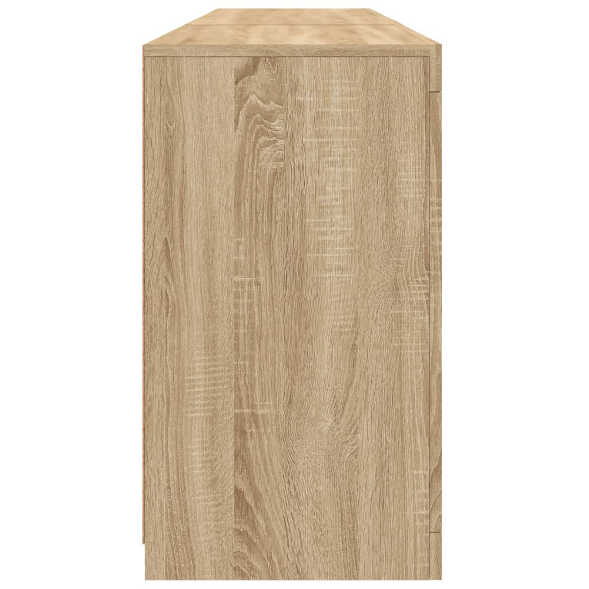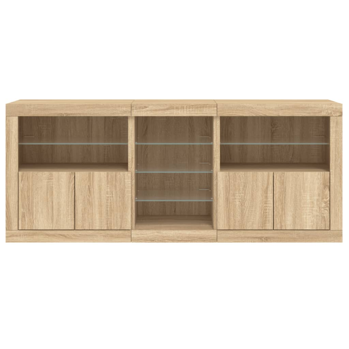 Decorate your room with this modern sideboard with LED lights, it easily blends with furniture in any style at your house. Durable material: The engineered wood is of exceptional quality with smooth surface and also features strength, stability and resistance to moisture.RGB LED lights: The buffet is equipped with vibrant RGB LED lights. With various customisable menus, you can effortlessly change the colour of the lights and even set them to adjust automatically. These LED lights not only enhance the contemporary look of the sideboard cabinet but also add to its trendy appeal.Ample storage space: The storage cabinet offers plenty of space to keep your everyday items neatly arranged and easily accessible.Displaying function: The sturdy top of the hallway cabinet is ideal for displaying decorative objects, photo frames, or potted plants.Practical doors: Keep your essentials free from dust by hiding them behind the doors of the side cabinet. Good to know:The product has a USB connector that requires a certified 5V USB power source (not included). Warning:To prevent it being overturned, this product must be used with the provided wall attachment device.