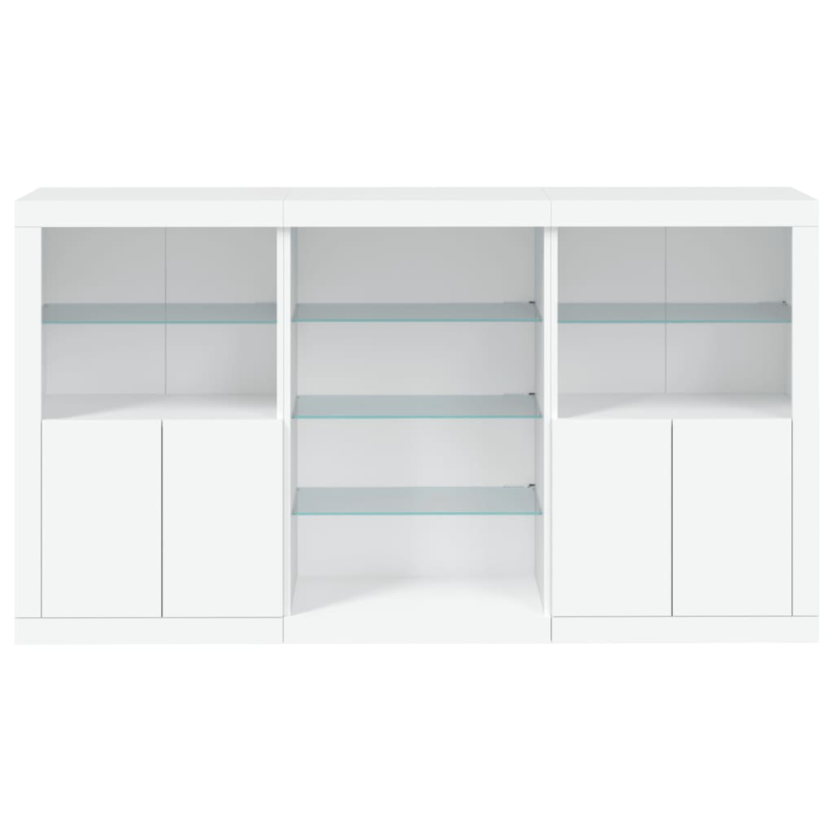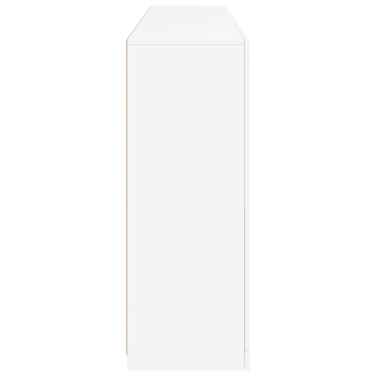 Decorate your room with this modern sideboard with LED lights, it easily blends with furniture in any style at your house. Durable material: The engineered wood is of exceptional quality with smooth surface and also features strength, stability and resistance to moisture.RGB LED lights: The buffet is equipped with vibrant RGB LED lights. With various customisable menus, you can effortlessly change the colour of the lights and even set them to adjust automatically. These LED lights not only enhance the contemporary look of the sideboard cabinet but also add to its trendy appeal.Ample storage space: The storage cabinet offers plenty of space to keep your everyday items neatly arranged and easily accessible.Displaying function: The sturdy top of the hallway cabinet is ideal for displaying decorative objects, photo frames, or potted plants.Practical doors: Keep your essentials free from dust by hiding them behind the doors of the side cabinet. Good to know:The product has a USB connector that requires a certified 5V USB power source (not included). Warning:To prevent it being overturned, this product must be used with the provided wall attachment device.