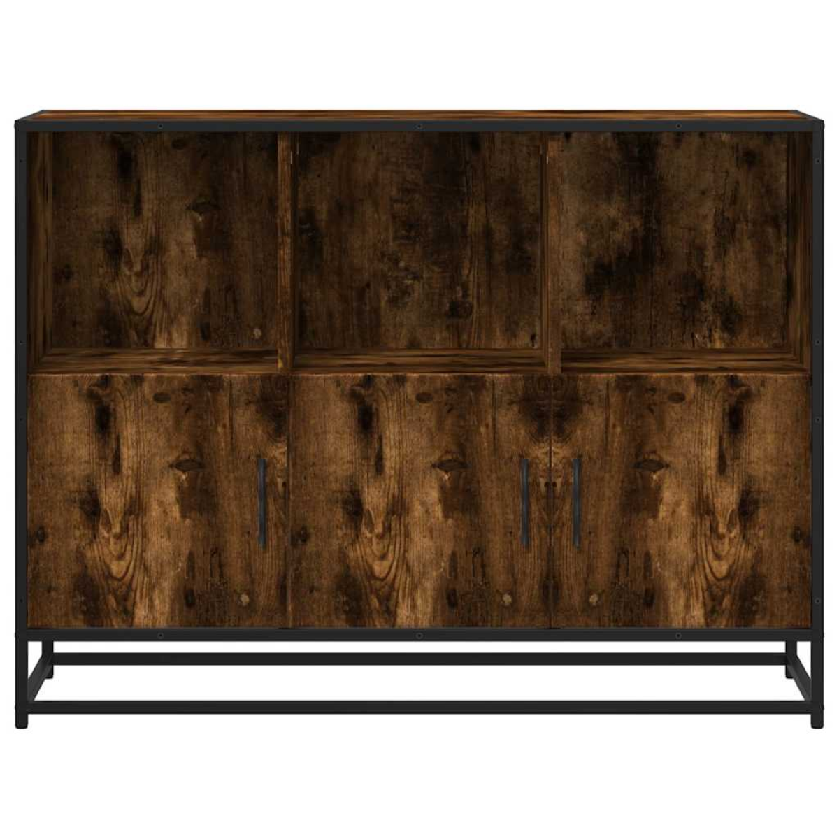 This modern sideboard, featuring a timeless look, is meant to be an excellent addition to your home. Stable and long-lasting frame: The metal frame of the storage cabinet enhances your interior with an industrial style and provides exceptional durability, stability and resistance to corrosion.Stable and durable material: Engineered wood is a durable and stable material with a smooth surface that is resistant to moisture, warping, and splitting, making it a reliable choice for a variety of projects.Ample storage space: The buffet offers ample storage space for dining essentials and other household items to keep them organised and within reach.Practical handles: The hallway cabinet comes with handles that provide a comfortable grip, helping you open and close the cabinet easily while adding extra beauty.Wide applications: You can use this side cabinet as a bathroom cabinet or kitchen cupboard, or just as an elegant storage cabinet in bedrooms, powder rooms, entryways, corridors and offices, dining rooms, and other living areas Warning:To prevent it from tipping over, this product must be used with the provided wall attachment device.