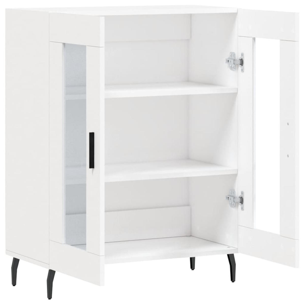 This classic sideboard, featuring a timeless look and glass design, is meant to be an excellent addition to your home. Durable material: The engineered wood is of exceptional quality with smooth surface and also features strength, stability and resistance to moisture. Made of engineered wood, the cabinet is easy to clean with a damp cloth.Ample storage space: The sideboard cabinet offers ample storage space for keeping your various daily essentials well organised and within easy reach.Glass design: The glass design highlights the cupboard's elegance and allows you to display your favourite things.Displaying function: The top of the storage cabinet is great for displaying your decorative items, photo albums or small plants.Metal feet: The metal feet add a calm style to your interior while ensuring stability. Warning:To prevent it being overturned, this product must be used with the provided wall attachment device.
