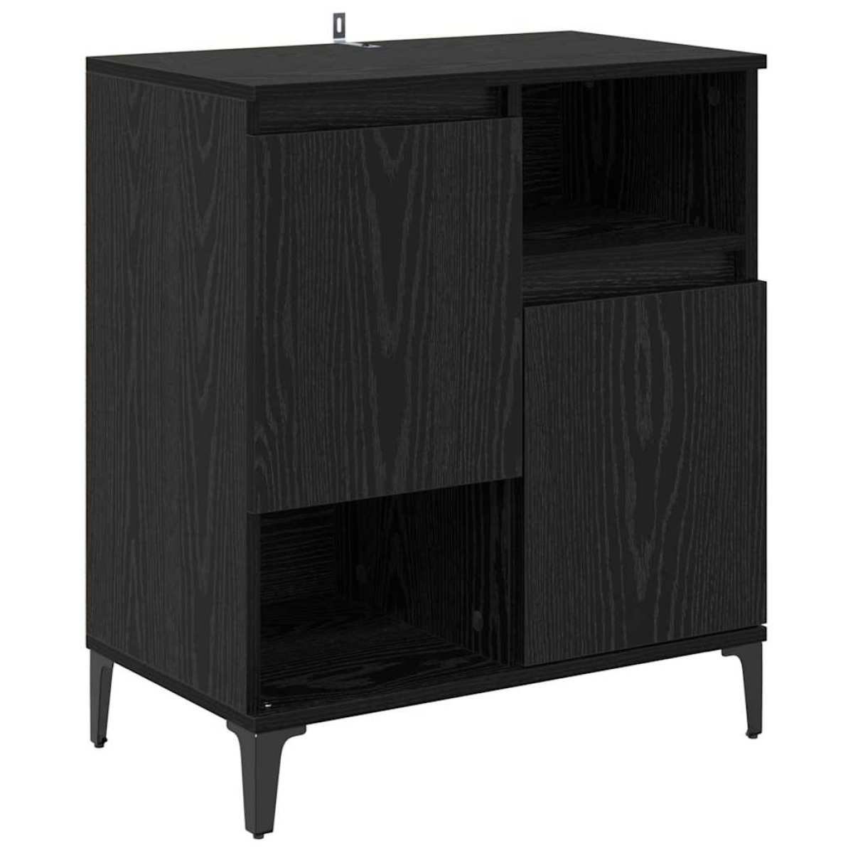 This Stylish Engineered Wood Sideboard Cabinet offers a modern take on storage solutions, perfectly integrating into any dining room or kitchen space. Its rectangular shape complements contemporary interiors, featuring simplistic designs with minimal ornamentation. The sideboard is tailored to fit seamlessly into various interiors, presenting a smooth surface and a sophisticated black finish. Ideal for organizing and storing essentials, this unit is a striking addition to one’s living or dining area that caters to neatness and style. Quality Materials: This sideboard is crafted from engineered wood, known for its resilience and smooth texture. The material not only ensures durability but also allows for easy compatibility with varied home decors. Its lasting build means you can trust this piece to provide functionality over extended periods. Components: Equipped with adjustable board shelves made of engineered wood, the sideboard provides structured storage capabilities. It incorporates hinge doors for easy access to stored items while maintaining the sleek appearance that modern rooms demand. Functional Features: Specifically designed for indoor use, it stands handy in apartments and homes where space optimization is key. The metal black legs add stability without detracting from the unit's modern vibe, allowing the piece to remain lightweight and easy to reposition. Suggested Usage: The sideboard fits perfectly in dining rooms and kitchens. It effectively holds dishware, cutlery, and other household items, making it a versatile addition to the household. Its smooth texture also adds an aesthetic edge, tying together room elements seamlessly. Care Instructions: To retain its pristine condition, wipe with a dry cloth and avoid abrasive chemicals. Securing this piece to a wall is recommended to prevent tipping, ensuring a safe addition to any home environment.