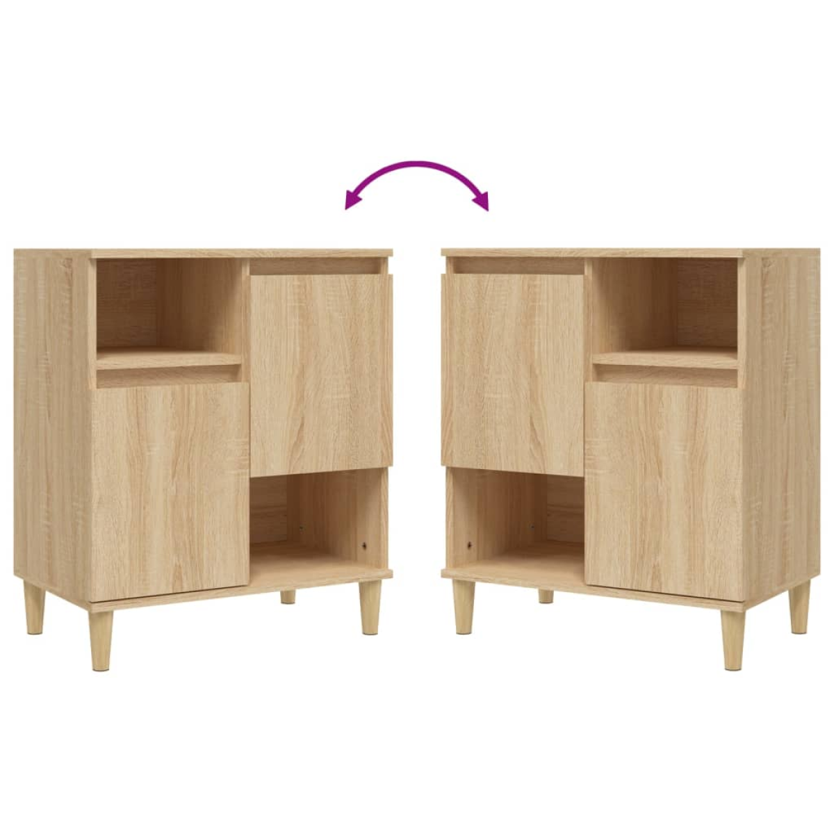 These trendy sideboards, featuring a sleek and classic design, are meant to upgrade your interior to the next level. Durable material: The engineered wood is of exceptional quality with a smooth surface and also features strength, stability, and resistance to moisture. Made of engineered wood, the cabinet is easy to clean with a damp cloth.Ample storage space: This sideboard cabinet has 4 compartments and 2 doors, offering ample storage space for keeping your magazines, books, DVDs, multimedia devices and other essentials well organised and within reach.Wooden feet: The solid eucalyptus wood feet give the storage cabinet a natural and pleasant look while ensuring stability.Displaying function: The top of the cupboard is perfect for placing potted plants, framed photos and other decorative items. Good to know:The doors can be installed in two ways. Warning:To prevent it being overturned, this product must be used with the provided wall attachment device.