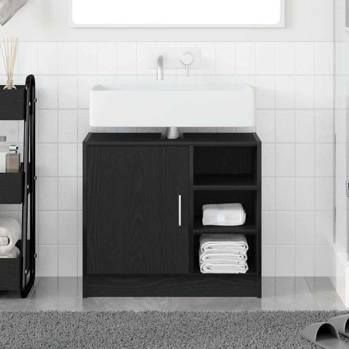 vidaXL Bathroom Cabinet Black Oak 63 x 29 x 55 cm Engineered wood