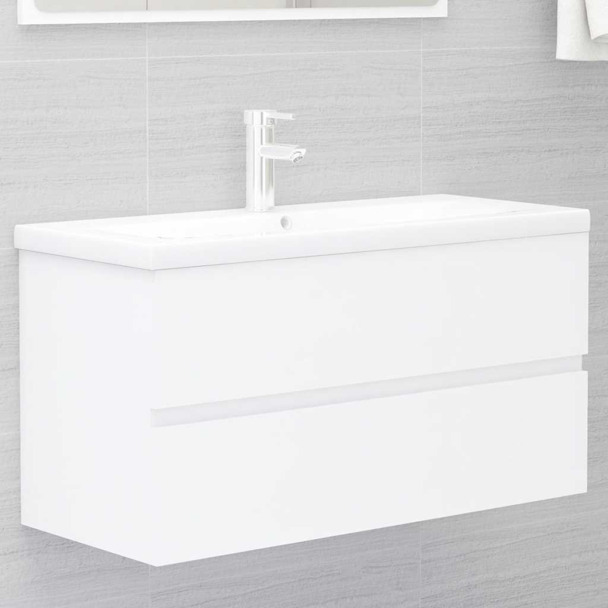 This sink cabinet with a built-in basin is a perfect match for your bathroom or washroom with a striking, tidy appearance. The cabinet is made of engineered wood, making it sturdy and stable. The cabinet has 1 drawer, offering ample storage space to store items in your bathroom. It fits perfectly under the sink and makes bathroom storage quite convenient. Made of ceramic, the basin can not only serve as a vessel for daily use but also as an adornment in your living space. Thanks to its trendsetting and contemporary design, this washbasin will definitely suit any decor. An overflow is also equipped to flow water out when it gets too full. Its glazed surface brings itself a modern yet elegant design. Additionally, the cabinet and basin are easy to clean with a damp cloth. Please note: The faucet and push drainer with overflow function are included in the delivery. The tap is a hot and cold tap, and if you have a need for hot water, a water heater must be connected.