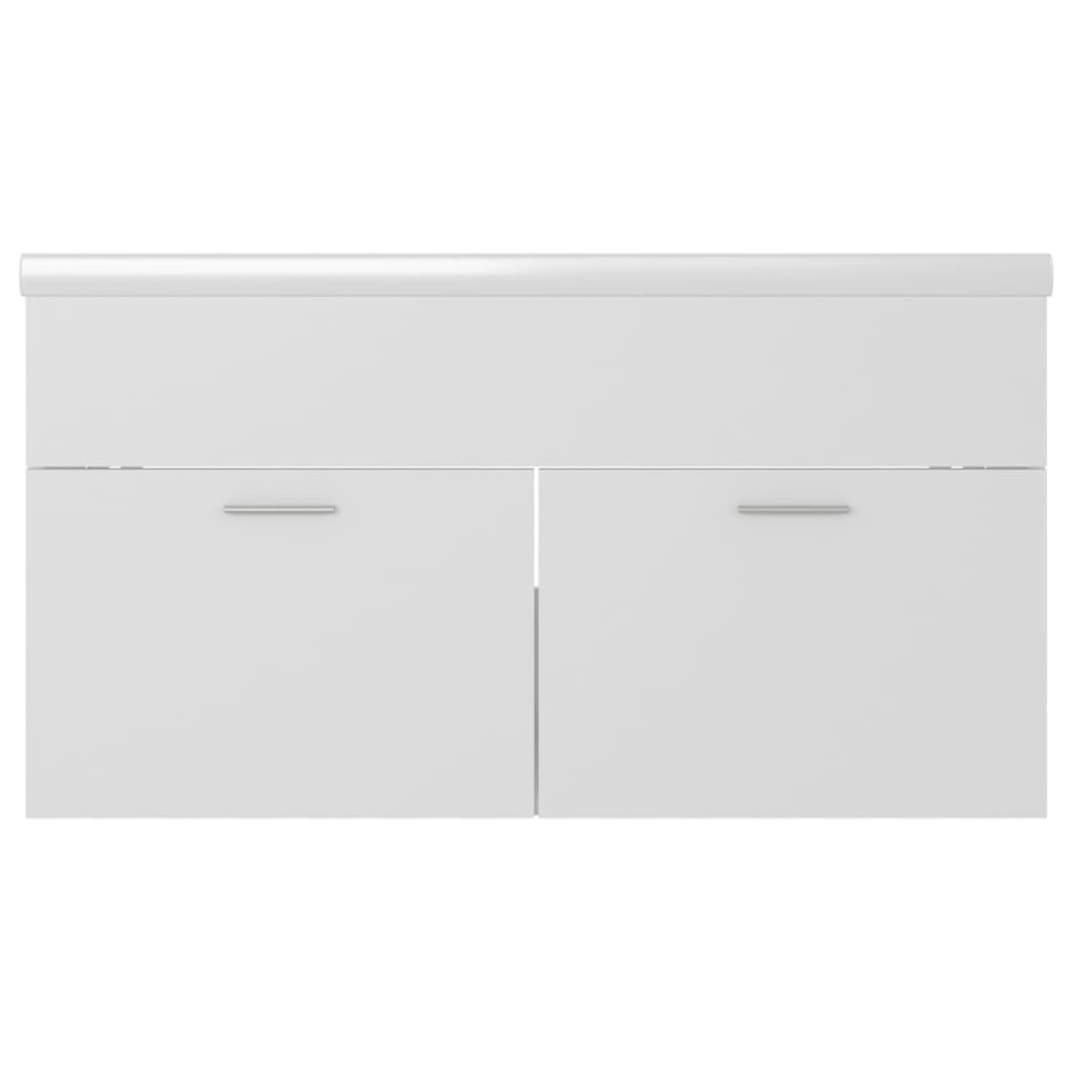 This sink cabinet with a built-in basin is a perfect match for your bathroom or washroom with a striking, tidy appearance. The cabinet is made of engineered wood, making it sturdy and stable. The storage cabinet has 1 compartment and 2 doors, offering ample space to store items. It fits perfectly under the sink and makes bathroom storage quite convenient. Made of ceramic, the basin can not only serve as a vessel for daily use but also as an adornment in your living space. Thanks to its trendsetting and contemporary design, this washbasin will definitely suit any decor. An overflow is also equipped to flow water out when it gets too full. Its glazed surface brings itself a modern yet elegant design. Additionally, the cabinet and basin are easy to clean with a damp cloth. Please note: The tap and the drain are not included in the delivery.