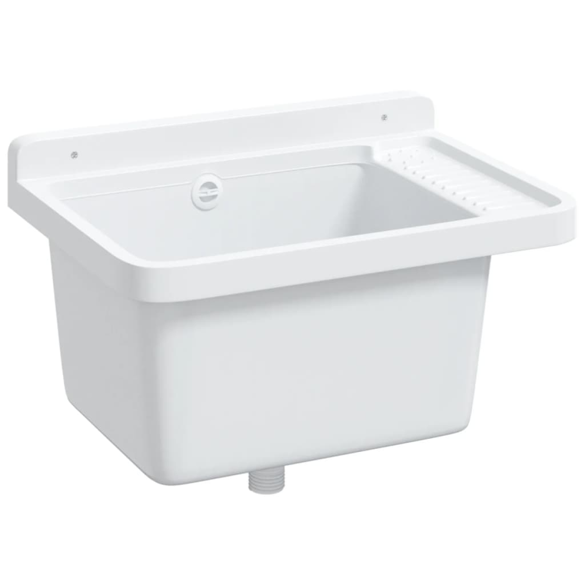 This practical and compact sink washbasin is suitable for indoor and outdoor. Durable material: The utility wash basin is made of 100% PP which is lightweight, tough and resistant to impact.Overflow hole: The wash basin features an overflow hole to flow water out when it gets too full.Practical design: The resin sink comes with a soap dish for your convenience.Wide applications: The basin sink is suitable for indoor and outdoor use. It's ideal to be used as a garden sink or a utility sink in the garage.