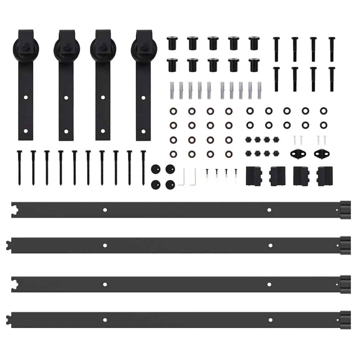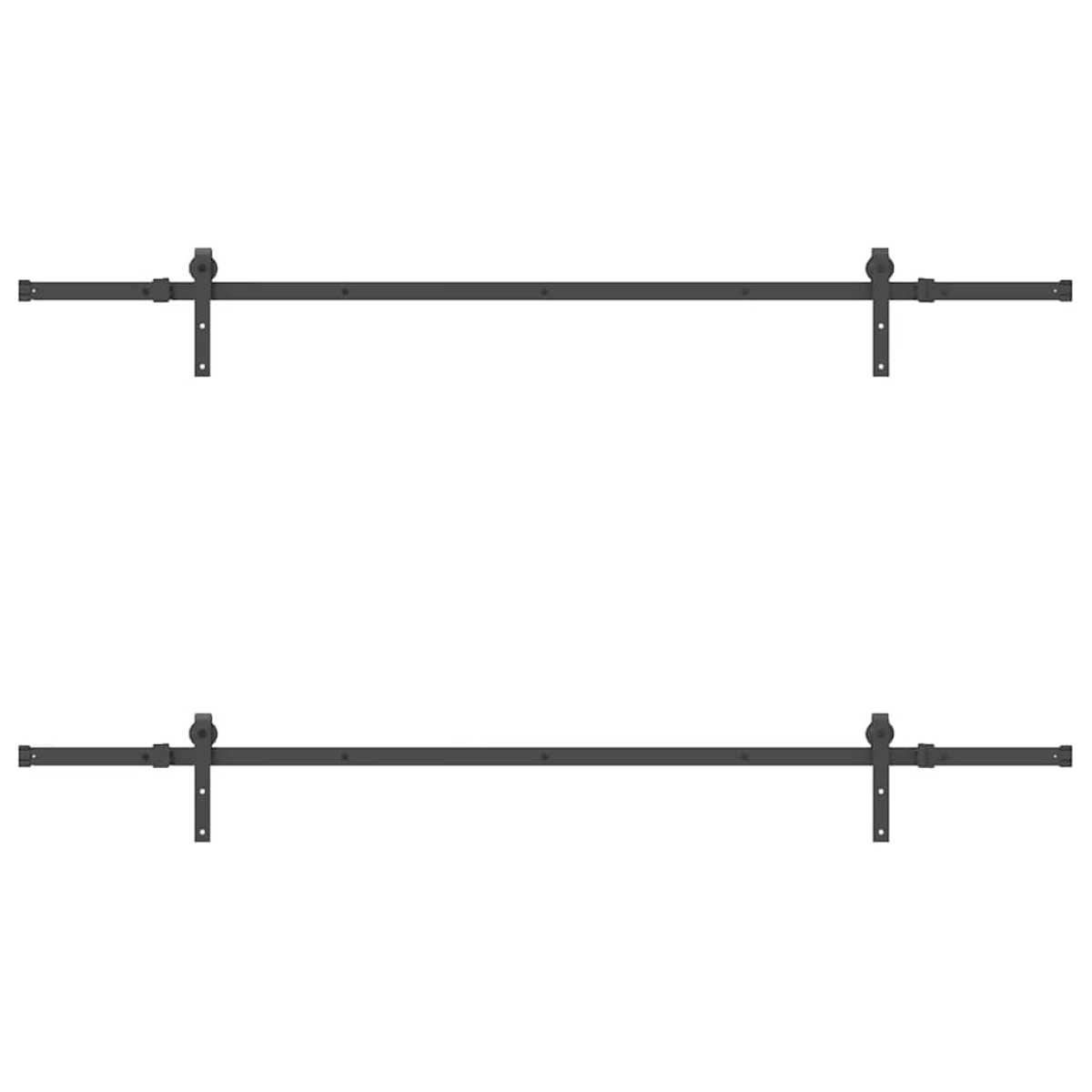 With this sliding door hardware kit, you can easily set up dual tracks for a pair of doors to slide in front of and behind each other. Safe and reliable: Thanks to the internal bearings, your doors can slide smoothly and quietly. Door stops are also included to prevent the derailing of the rollers, while the rubber gaskets will buffer the bump from rollers and reduce the noise.Heavy-duty material: Powder-coated steel is strong, stable, durable, and corrosion-resistant, ensuring long-lasting performance.Ideal for double barn doors: When wall space is limited, the barn door bypass bracket kit allows two barn doors to slide independently on two tracks without the need for additional clearance.Easy installation: This sliding door hardware set can be easily installed on the barn door with the included mounting accessories, making the installation a breeze.Wide application: This barn door bracket kit allows for one door to slide over another, making it perfect for closets, pantries, or possibly even multiple openings on the same wall. Good to know:The delivery includes sliding door hardware kit only. The door is not included in the delivery.