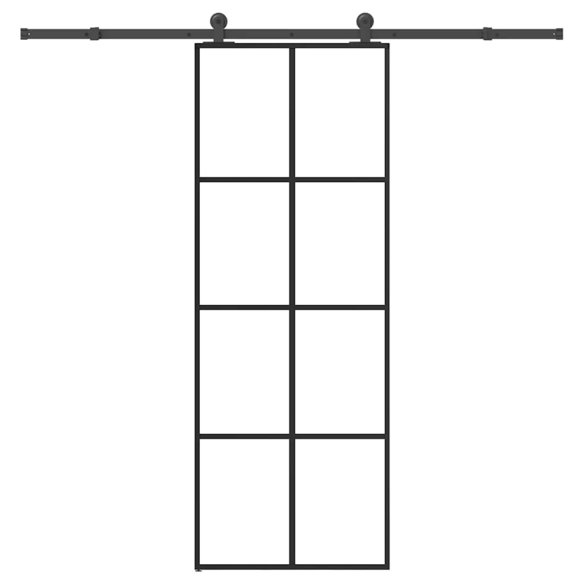 Add a touch of modern style to your home with this sliding door instantly. It provides the perfect solution for a space-saving opening. Durable material: Thanks to the intelligent structure, tempered glass is stronger and more durable than any other glass. Tempered glass is known to withstand heavy impacts, scratches, blows, etc.Stable and long-lasting frame: Aluminum is both lightweight and durable, with excellent corrosion resistance due to its self-protective oxide layer. This aluminium door is designed for longevity, making it an ideal choice for anyone seeking a robust door.Quiet and smooth sliding: Thanks to the internal bearings, your internal sliding door will slide smoothly and quietly. Doorstops are also included to prevent the derailing of the rollers, while the rubber gaskets will buffer the bump from rollers and reduce the noise.Practical design: The door panel is made of transparent glass, which allows the plenty of light to your room.Slim design: The slim frame design gives the sliding glass door a modern and minimalist appearance.