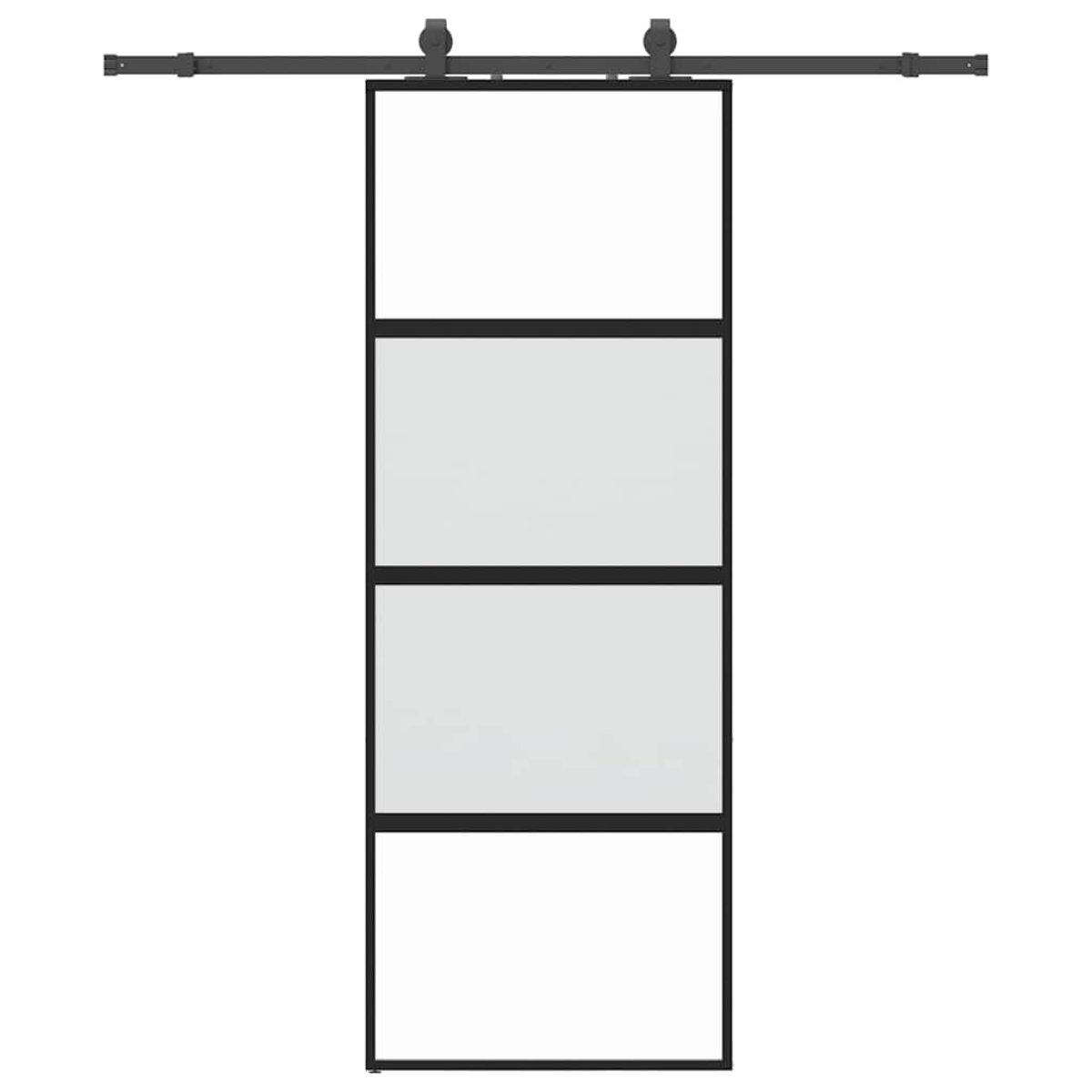 Create a stylish transition from one room to another with this sliding door! Durable material: Thanks to the intelligent structure, tempered glass is stronger and more durable than any other glass. Tempered glass is known to withstand heavy impacts, scratches, blows, etc.Stable and long-lasting frame: Aluminum is both lightweight and durable, with excellent corrosion resistance due to its self-protective oxide layer. This aluminum door is designed for longevity, making it an ideal choice for anyone seeking a robust door.Safe and noiseless: Thanks to the stopper, which stops the door when opening or closing by triggering the stop buffers, the sliding door can also be opened and closed quietly.Privacy design: The matt glass allows some light to pass through to create a bright living area and privacy at the same time.Space-saving design: This sliding door saves space and makes the room feel more spacious. It is the first choice for a simple and atmospheric interior design in a modern style.Easy to use: A sliding door hardware set is also included in the scope of delivery, so that installation is effortless. The hardware set is made of powder-coated steel and thus contributes to the robustness of the door. Good to know:For installation, you can consult our installation guide for the door and sliding hardware kits.