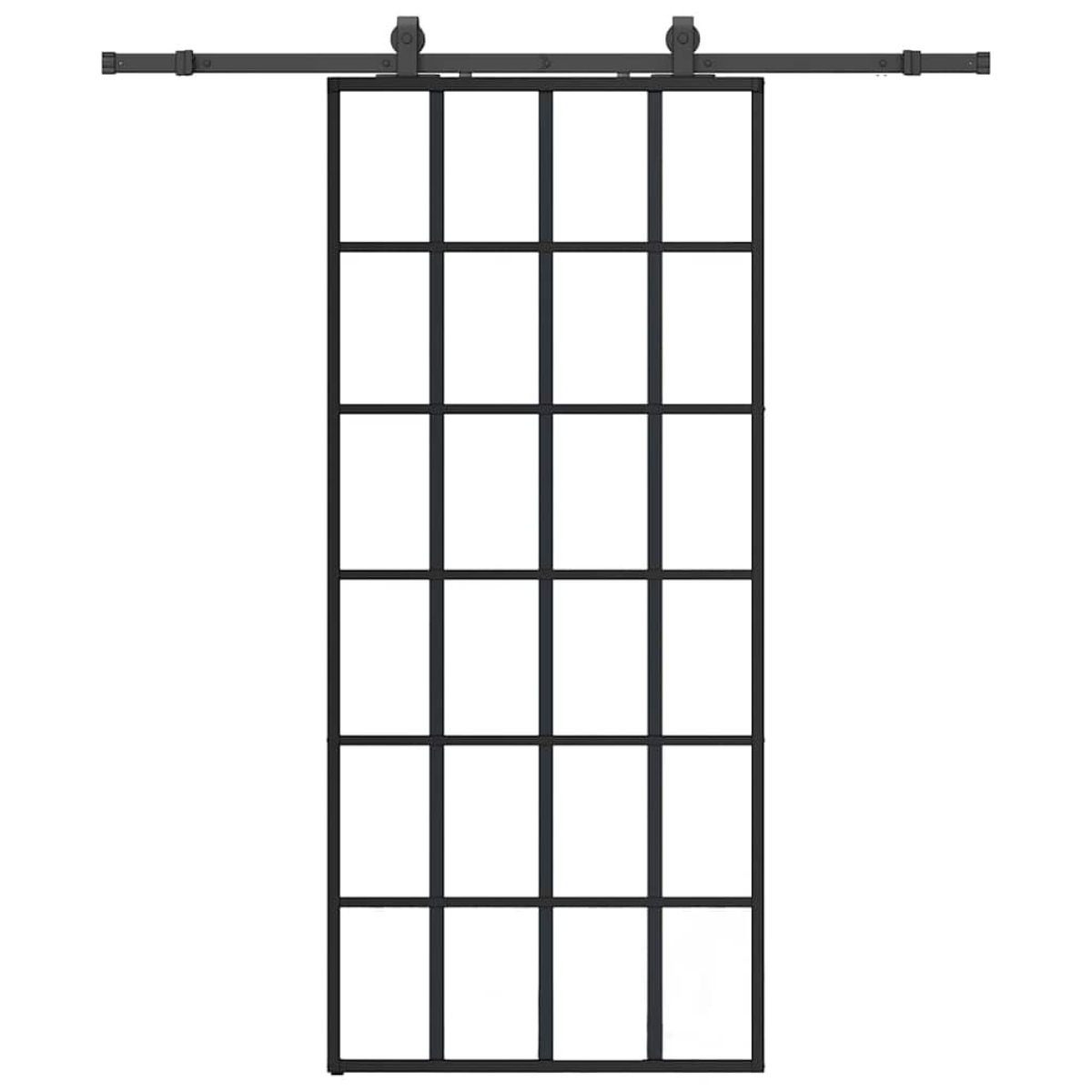This sliding door is designed to enrich the entrance area of your house and also ensure better security for your home. Durable material: Thanks to the intelligent structure, ESG glass is stronger and more durable than any other glass. Tempered glass is known to withstand heavy impacts, scratches, blows, etc.Sturdy sliding rails: Steel is an exceptionally hard and strong material. It offers sturdiness and stability. The powder coating on steel creates a protective layer against wear and tear. Made of powder-coated steel, the sliding rails are sturdy, durable and heavy-duty.Quiet and smooth sliding: Thanks to the internal bearings, your internal sliding door will slide smoothly and quietly. Doorstops are also included to prevent the derailing of the rollers, while the rubber gaskets will buffer the bump from rollers and reduce the noise.Space-saving design: This sliding door saves space and looks more spacious. It is the first choice for a simple and atmospheric modern home design.Wide applications: The sliding barn door can be installed on both wooden walls and concrete walls. It's great for use in the bedroom, kitchen, barn, garage, etc. Good to know:Good to know: For installation, you can consult our installation guide for the door and sliding hardware kits.
