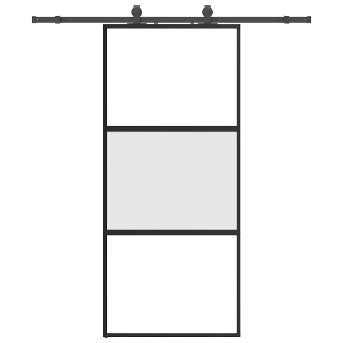 Create a stylish transition from one room to another with this sliding door! Durable material: Thanks to the intelligent structure, tempered glass is stronger and more durable than any other glass. Tempered glass is known to withstand heavy impacts, scratches, blows, etc.Stable and long-lasting frame: Aluminum is both lightweight and durable, with excellent corrosion resistance due to its self-protective oxide layer. This aluminum door is designed for longevity, making it an ideal choice for anyone seeking a robust door.Safe and noiseless: Thanks to the stopper, which stops the door when opening or closing by triggering the stop buffers, the sliding door can also be opened and closed quietly.Privacy design: The matt glass allows some light to pass through to create a bright living area and privacy at the same time.Space-saving design: This sliding door saves space and makes the room feel more spacious. It is the first choice for a simple and atmospheric interior design in a modern style.Easy to use: A sliding door hardware set is also included in the scope of delivery, so that installation is effortless. The hardware set is made of powder-coated steel and thus contributes to the robustness of the door. Good to know:For installation, you can consult our installation guide for the door and sliding hardware kits.