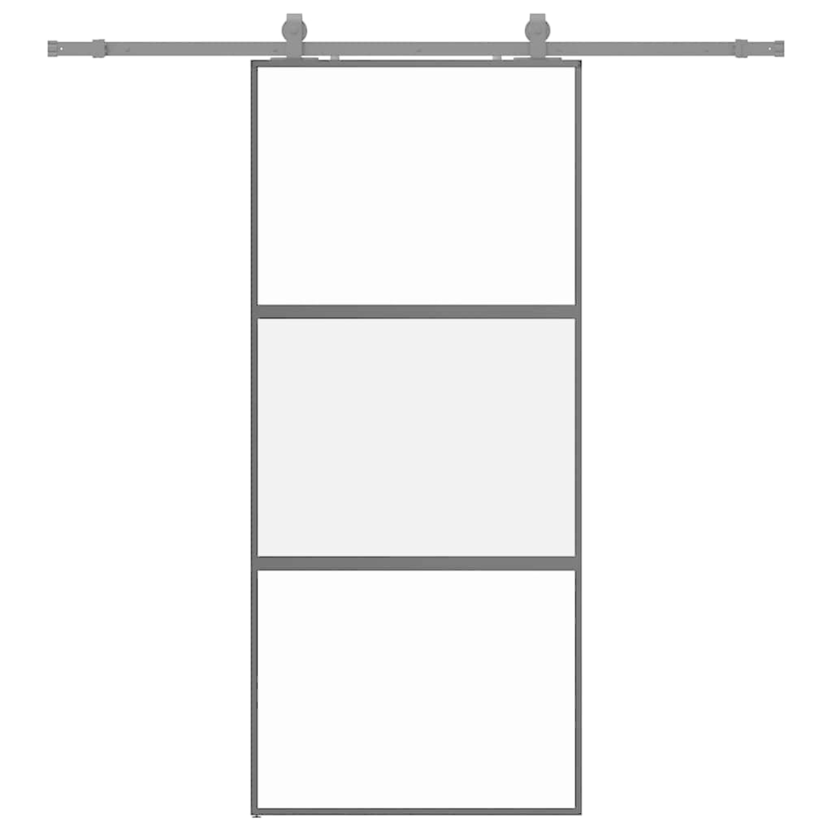 Create a stylish transition from one room to another with this sliding door! Durable material: Thanks to the intelligent structure, tempered glass is stronger and more durable than any other glass. Tempered glass is known to withstand heavy impacts, scratches, blows, etc.Stable and long-lasting frame: Aluminum is both lightweight and durable, with excellent corrosion resistance due to its self-protective oxide layer. This aluminum door is designed for longevity, making it an ideal choice for anyone seeking a robust door.Safe and noiseless: Thanks to the stopper, which stops the door when opening or closing by triggering the stop buffers, the sliding door can also be opened and closed quietly.Privacy design: The matt glass allows some light to pass through to create a bright living area and privacy at the same time.Space-saving design: This sliding door saves space and makes the room feel more spacious. It is the first choice for a simple and atmospheric interior design in a modern style.Easy to use: A sliding door hardware set is also included in the scope of delivery, so that installation is effortless. The hardware set is made of powder-coated steel and thus contributes to the robustness of the door. Good to know:For installation, you can consult our installation guide for the door and sliding hardware kits.