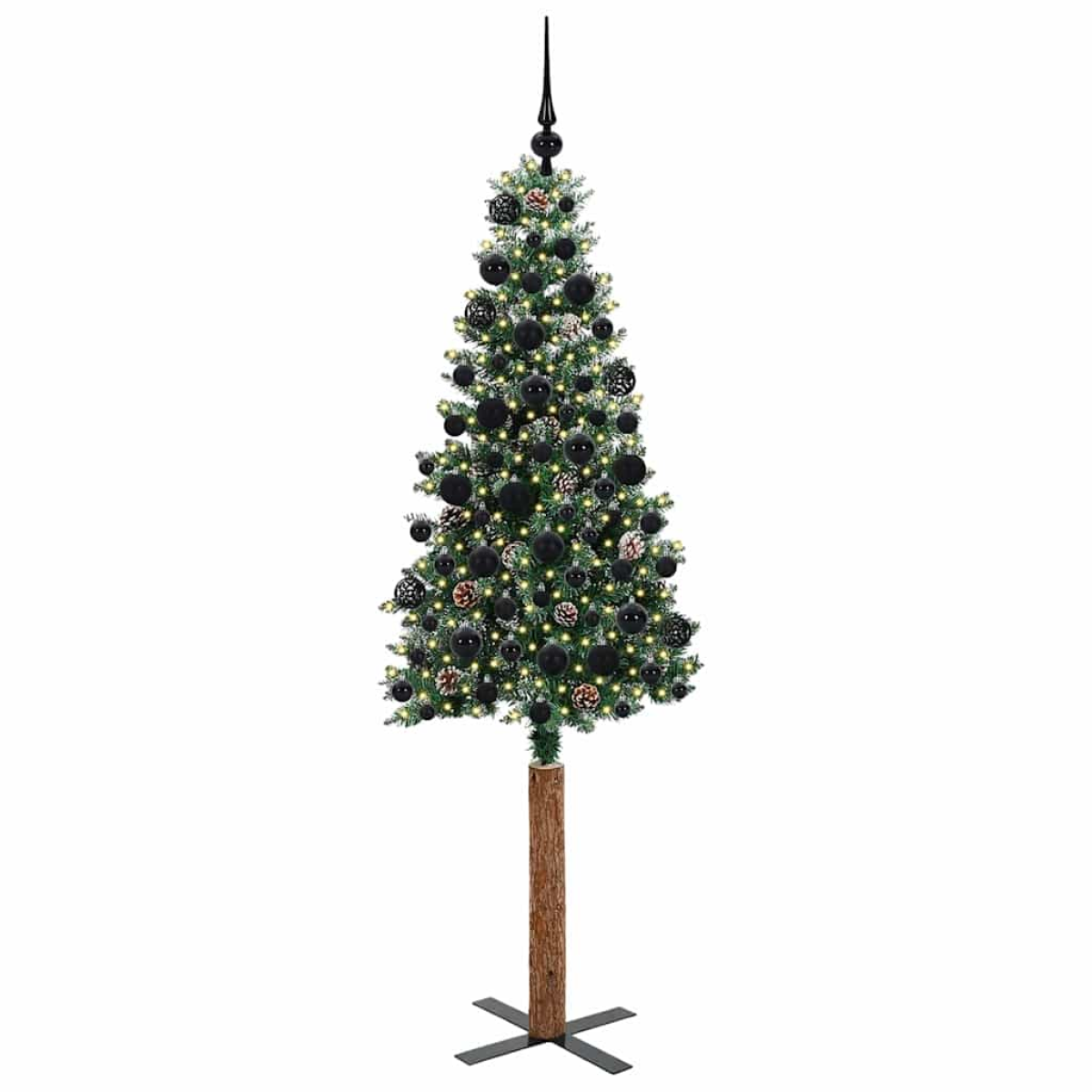 - Decorative with pine cones and ornament balls, Lifelike branch tips with frosted snow, Real wood trunk